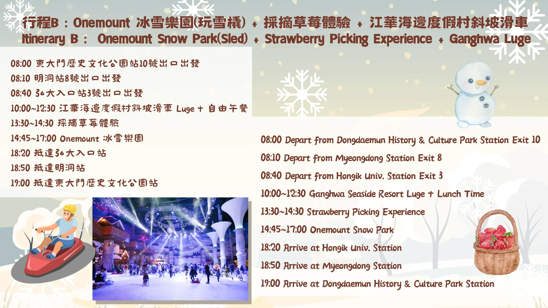 - Enjoy sledding, strawberry picking, and luge rides for a full day of Korean winter fun.