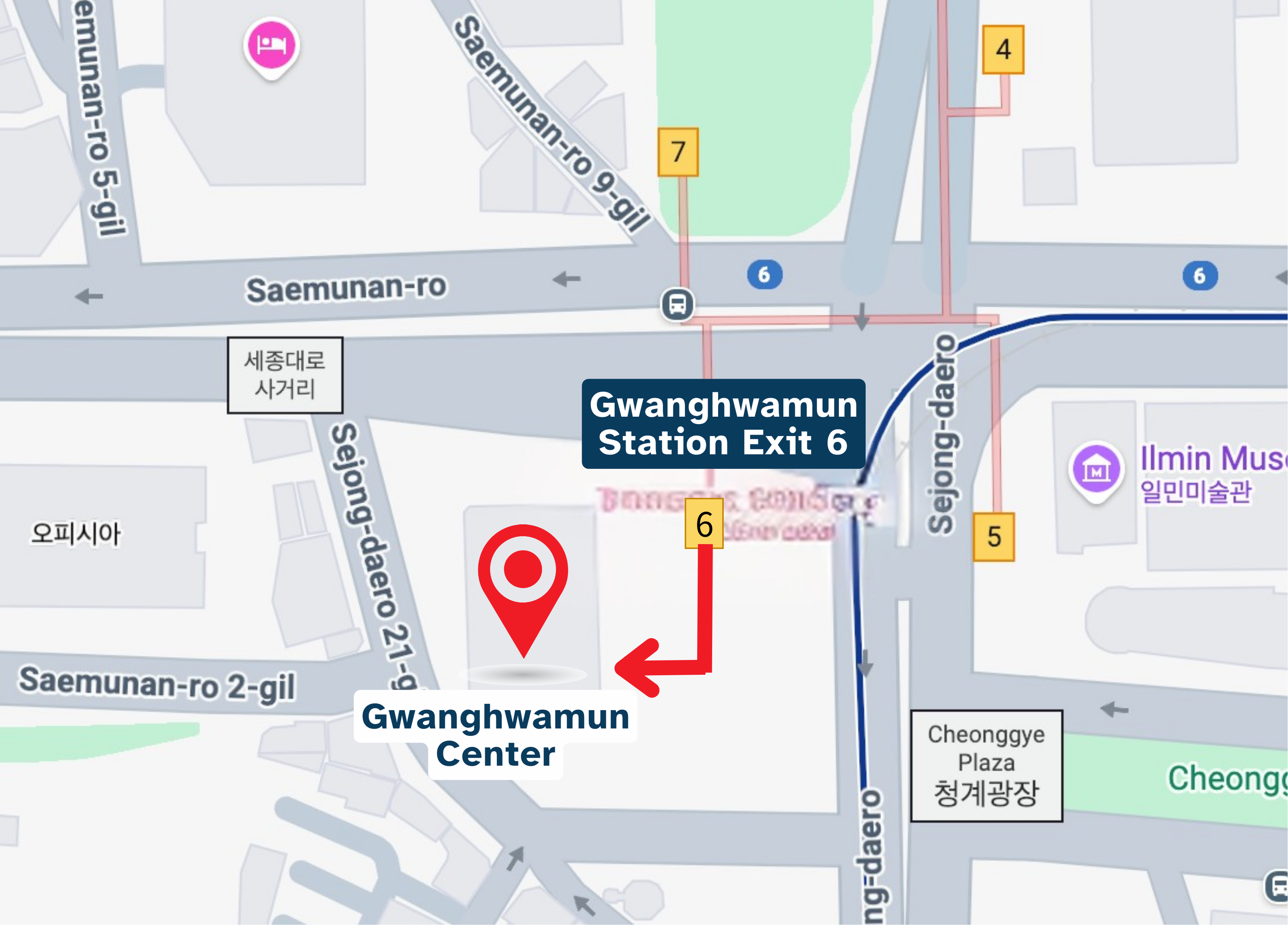 - Gwanghwamun Center: 149, Sejong-daero, Jongno-gu, Seoul, Republic of Korea