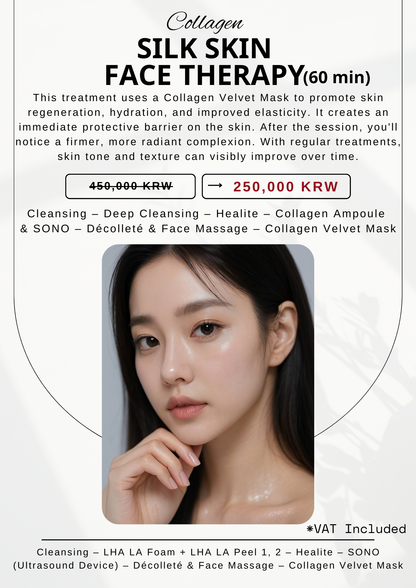Deep cleansing and radiance through Lalapil, elasticity and hydration using LDM, anti-aging effects through placenta injections,