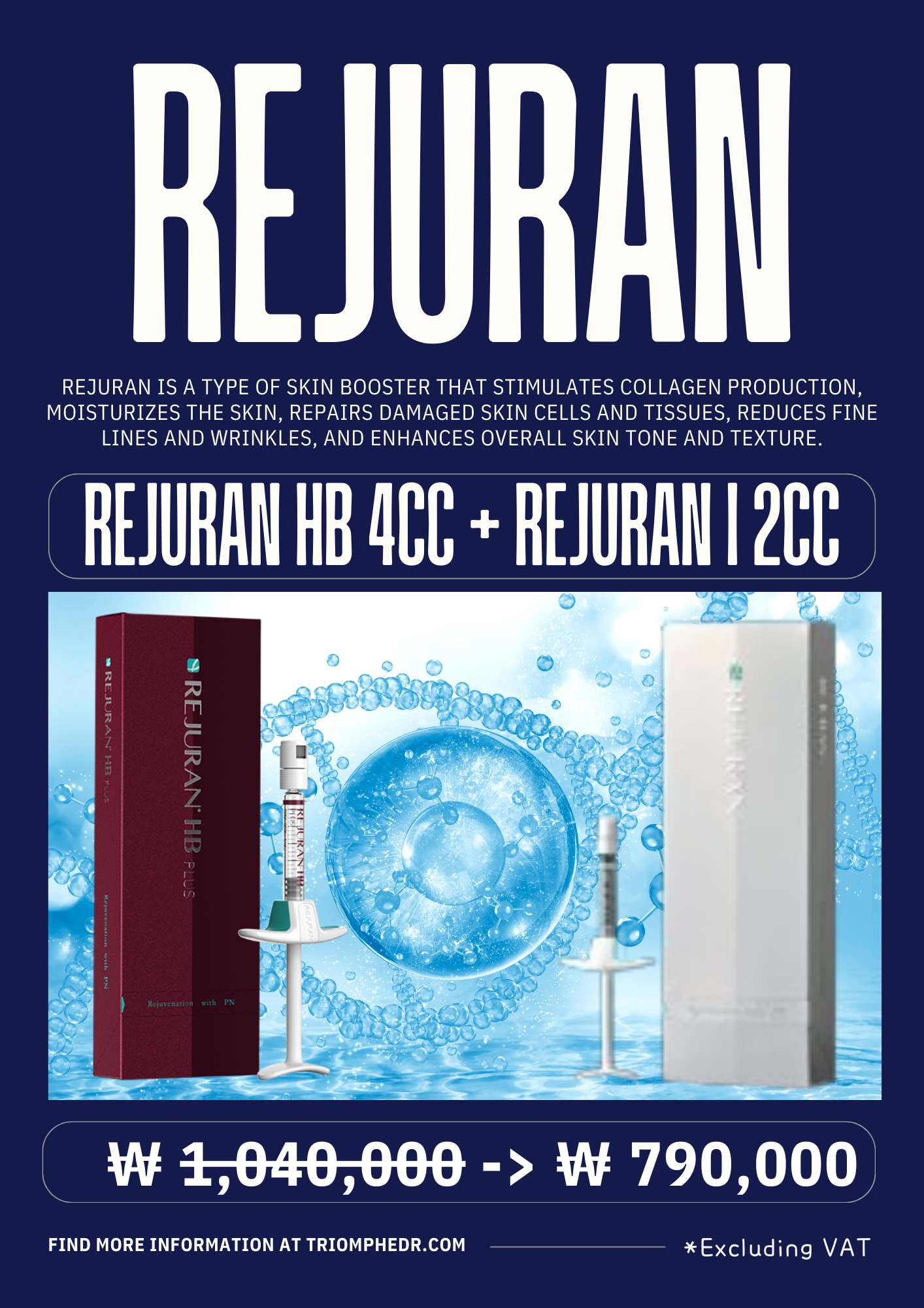 Inject HB Skin Booster, which contains the powerful regenerative ingredient Rejuran and is made for painless use, using nano-needles.