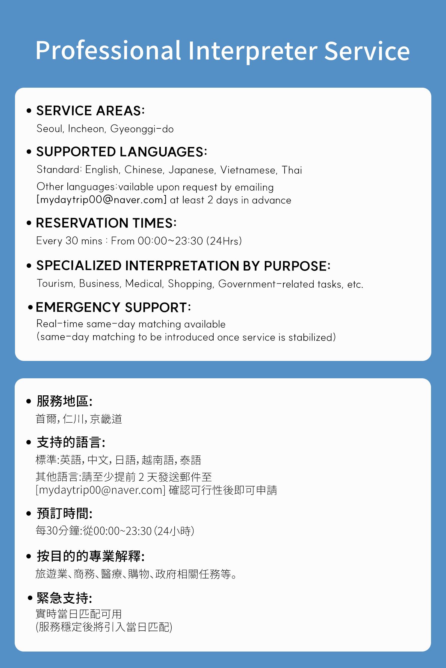 - This product is a professional Korean interpretation service that allows you to communicate smoothly, even if you speak a different language.