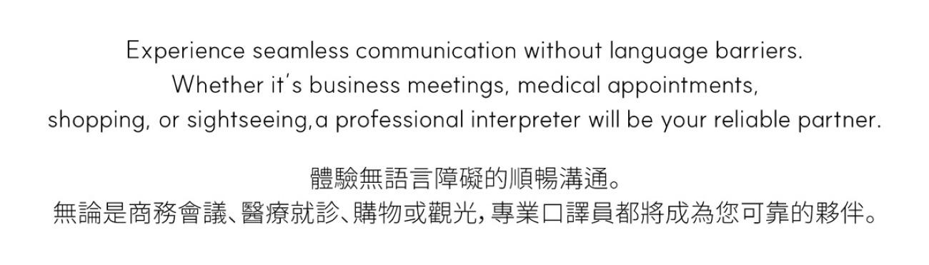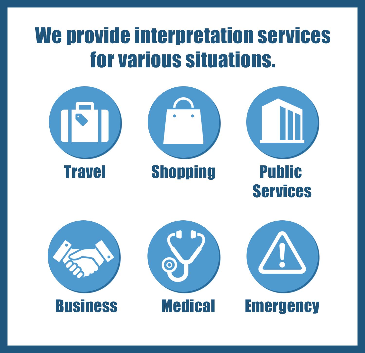 - From business meetings and medical consultations to shopping and sightseeing, our professional interpreters provide accurate and natural interpretation tailored to every situation.