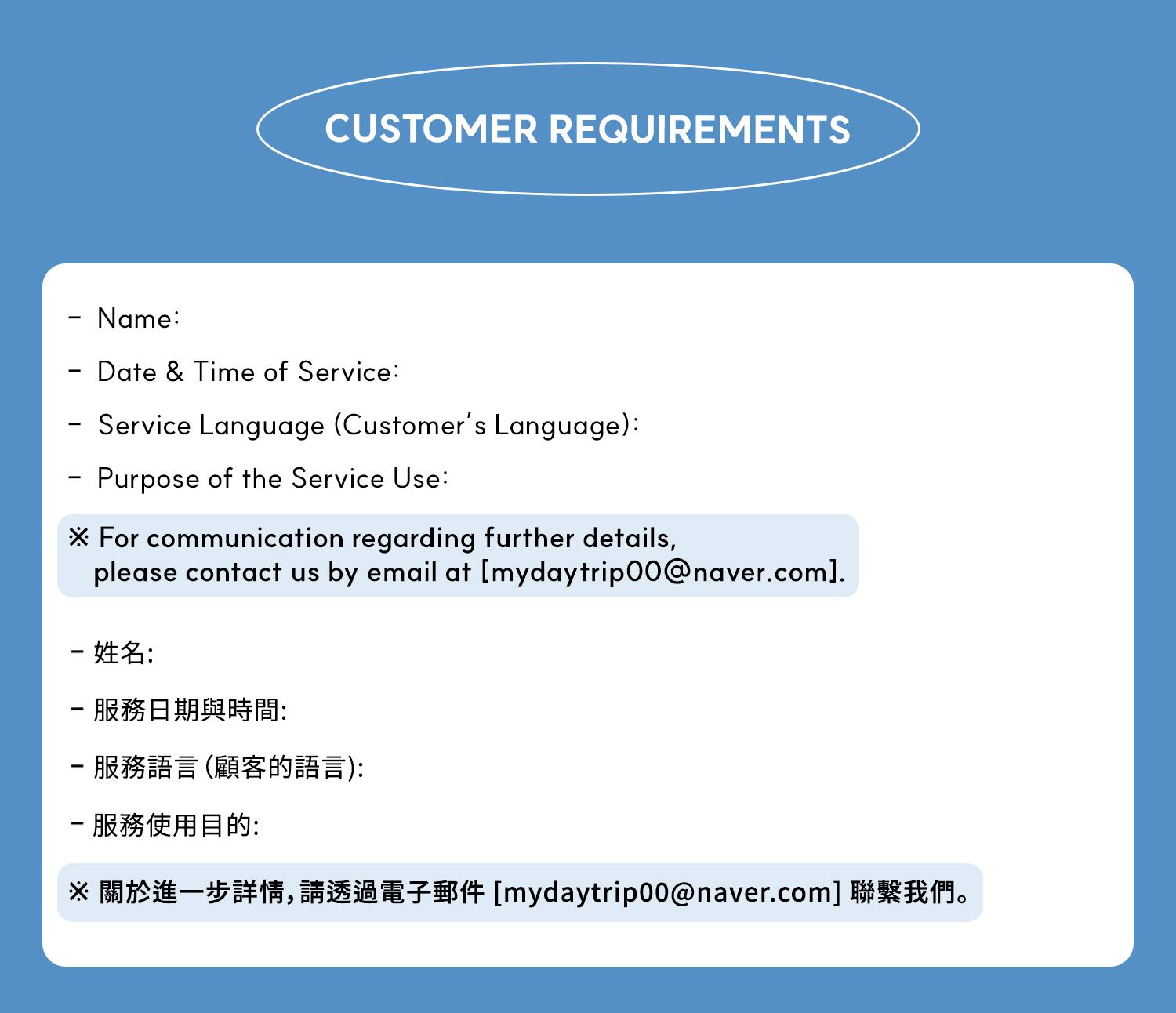 - With an interpreter who is both professional and friendly, you’ll always be able to communicate smoothly in Korea.