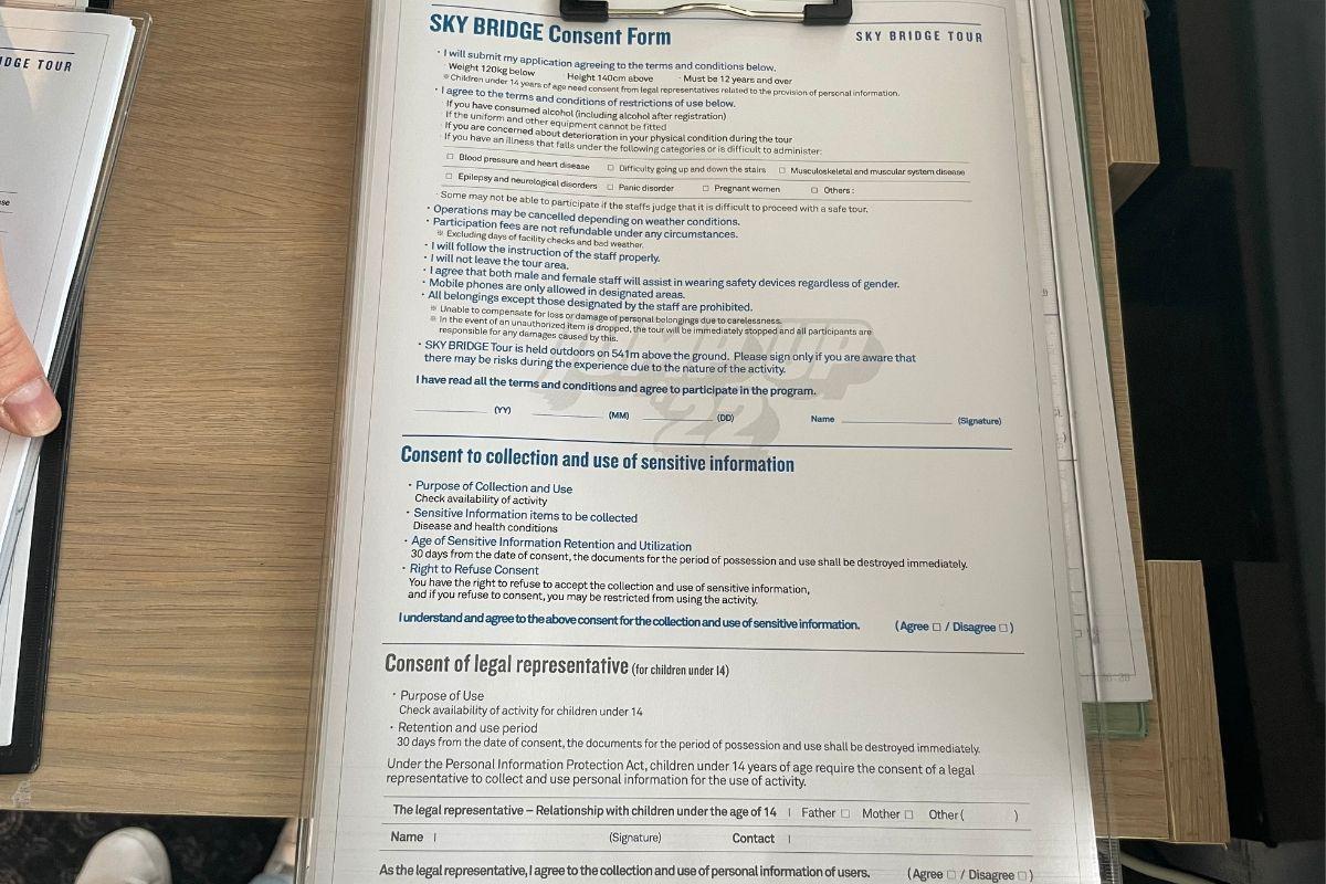 Cuando todos entren en el piso 117, verán el punto de partida del recorrido por el Sky Bridge. ¡Debes llegar al menos diez minutos antes de la hora del tour para asegurarte de confirmar tu cita, así como firmar varios documentos de seguridad antes de comenzar!