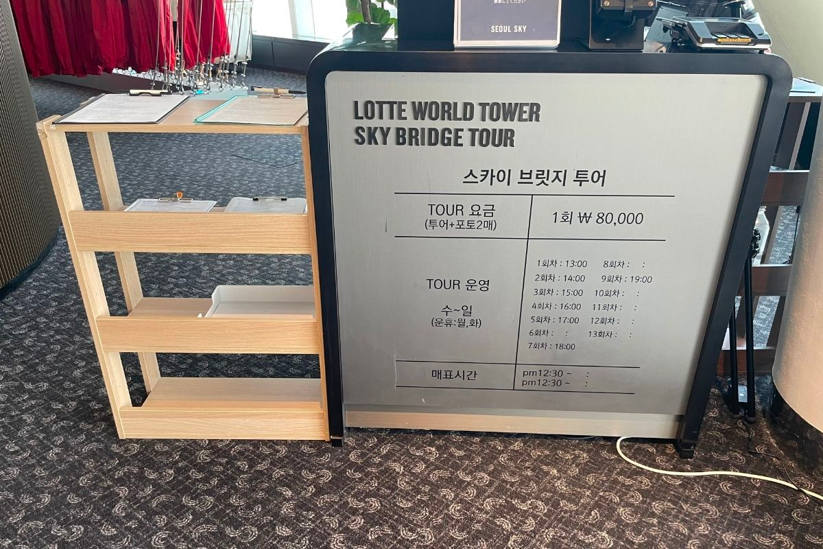 Si alguien está buscando cosas emocionantes que hacer en Seúl. No tienes que buscar lejos, es el Tour del Puente del Cielo, o caminar por el puente en el piso superior del Edificio Seoul Sky Jamsil en el piso superior, ¡que tiene más de 541 metros de altura!