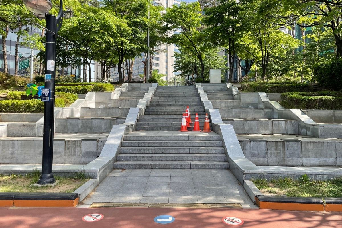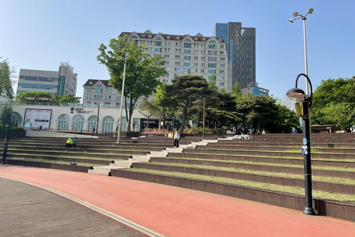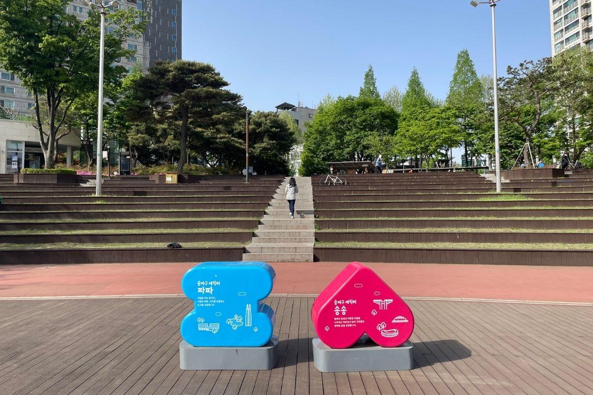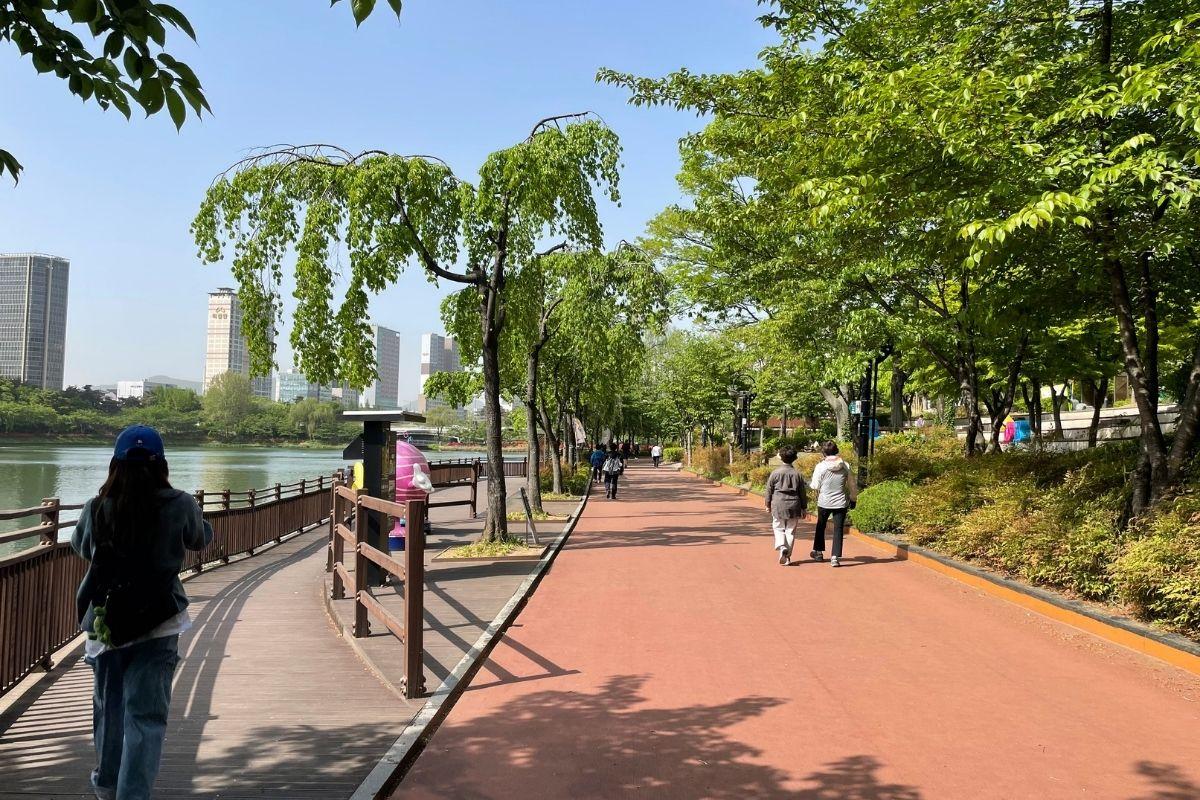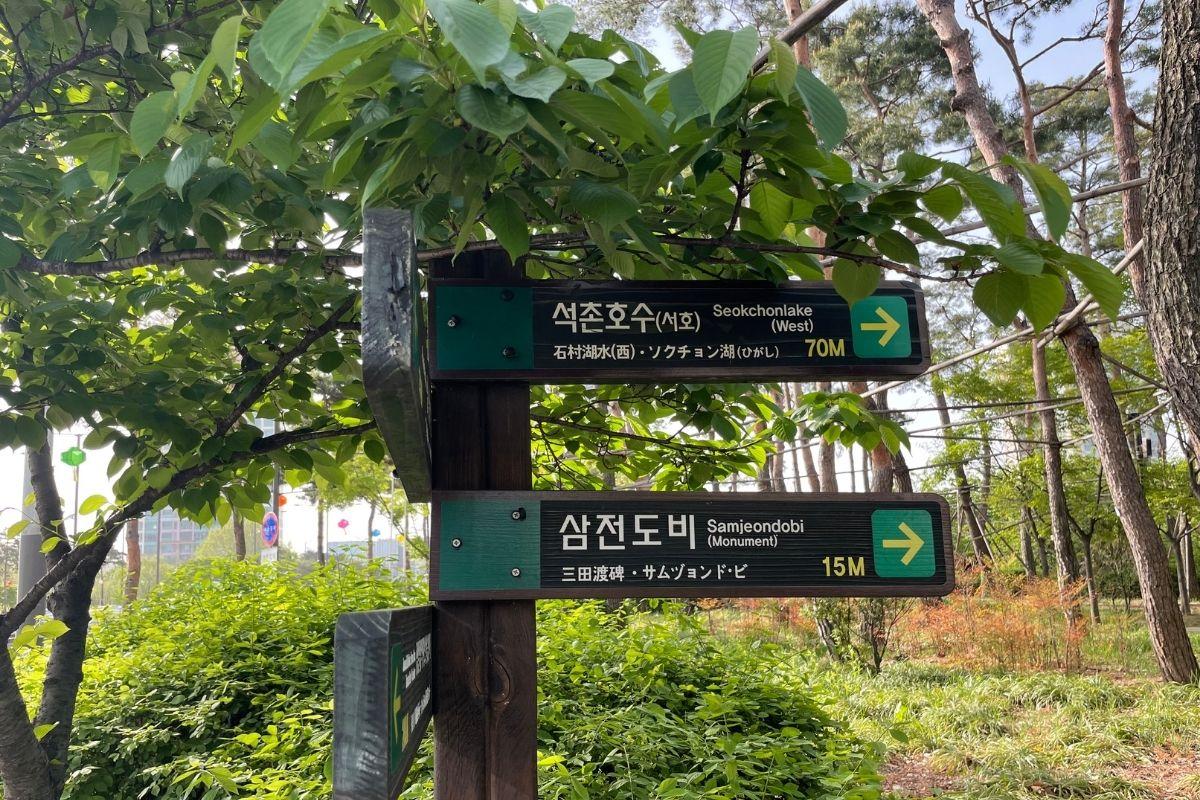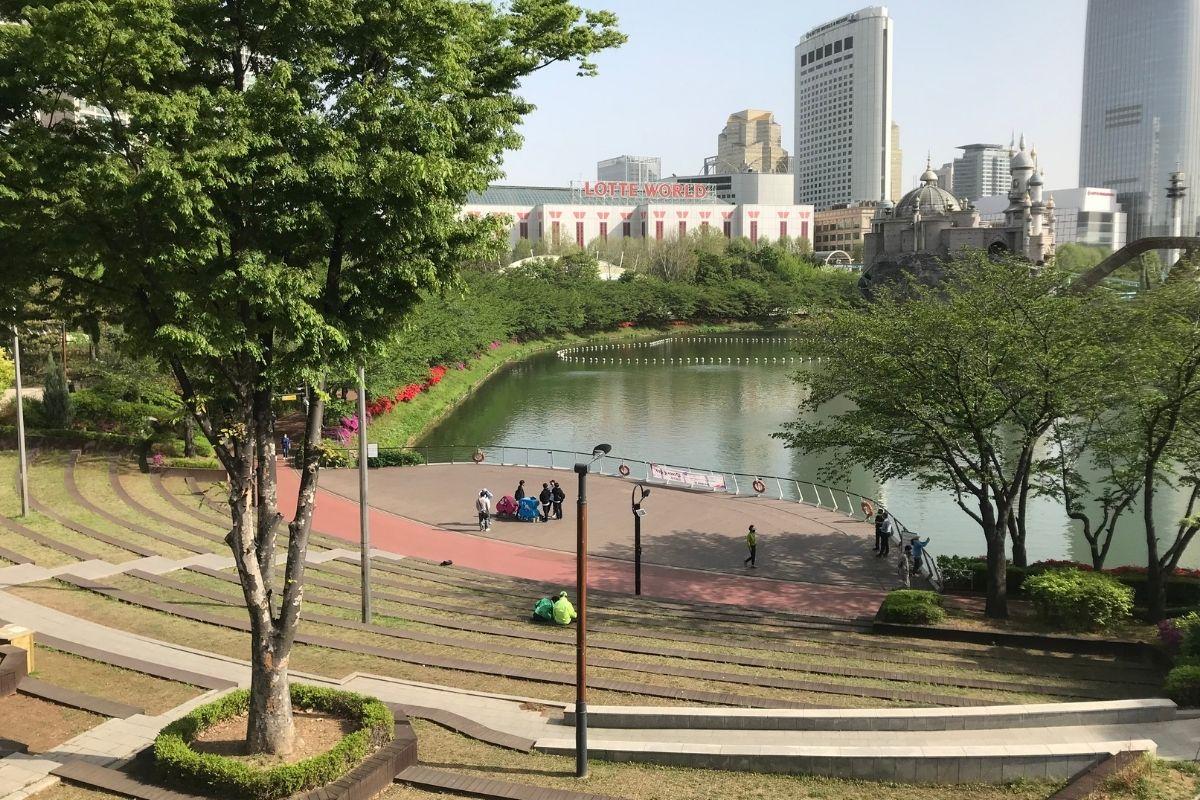 Esta es la entrada al Parque del Lago Seokchon en el lado oeste. Ahora estarás en el parque.