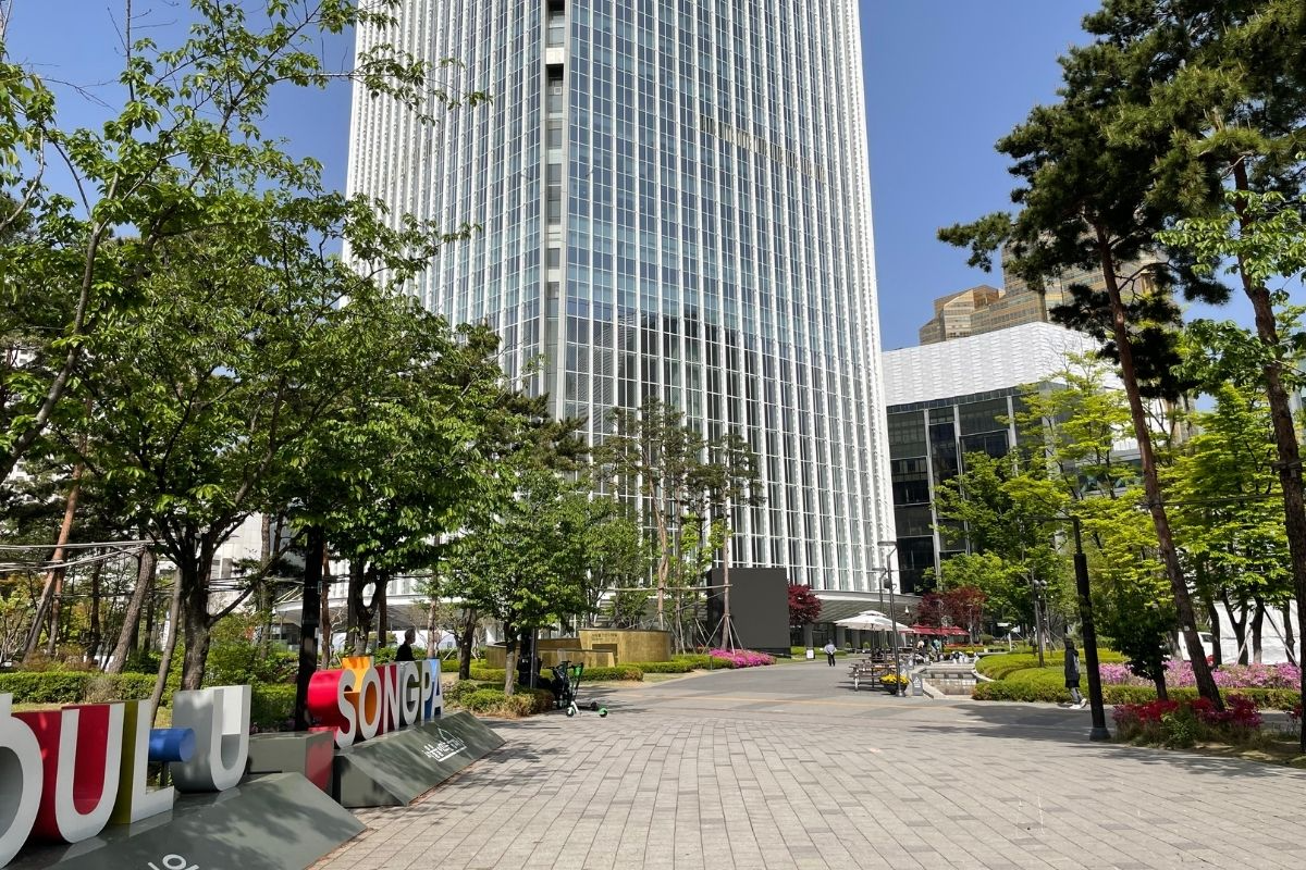 Si caminas más allá de esta área mostrada arriba, podrás ver la entrada a Lotte World Tower, que es un centro comercial lleno de actividades divertidas como el Sky Bridge Tour y el mirador Seoul Sky Observation deck.