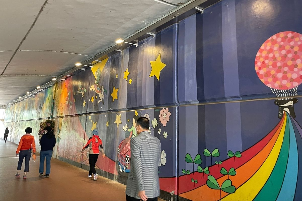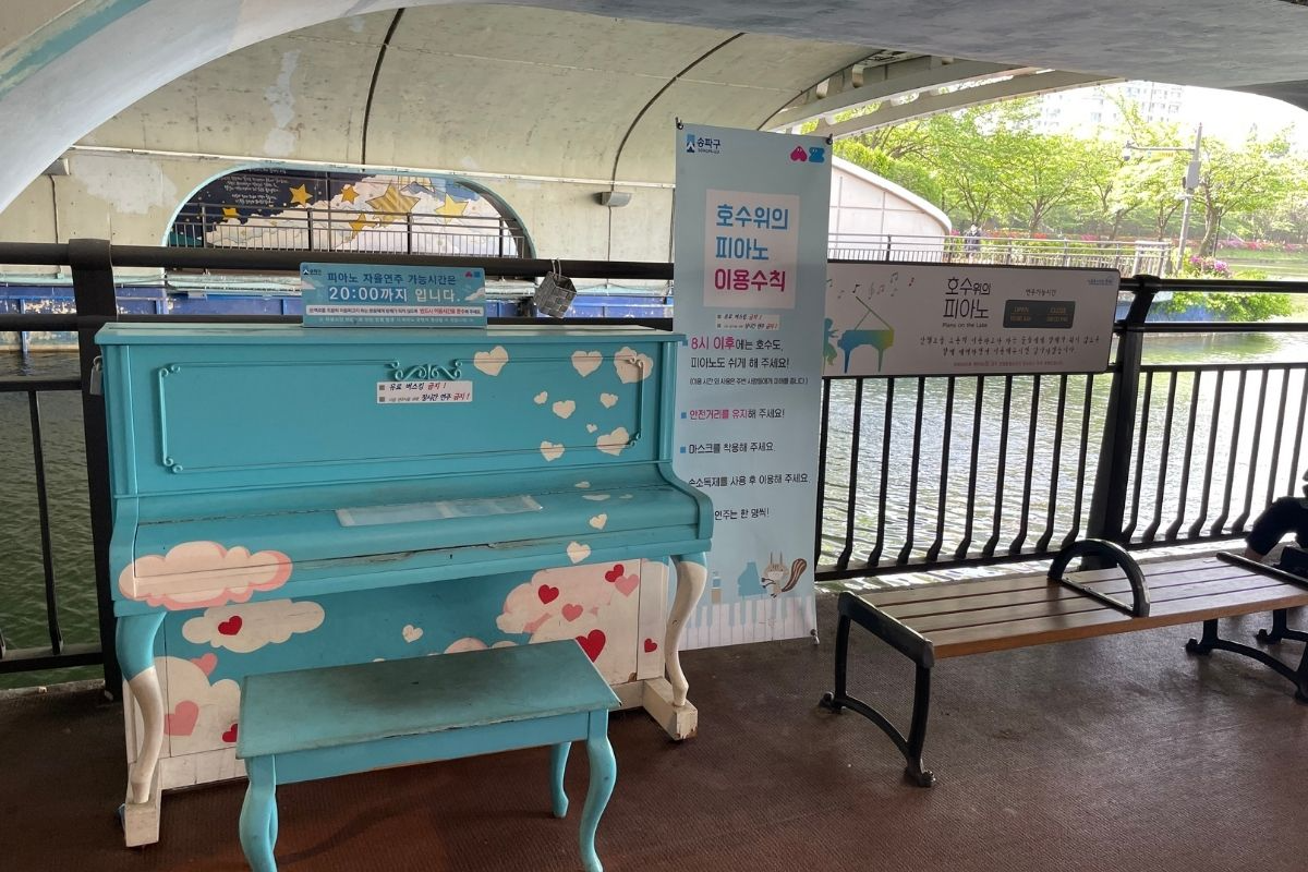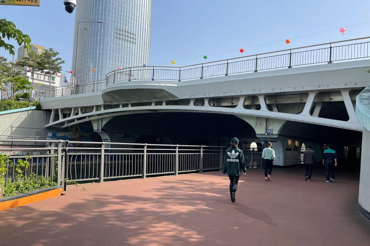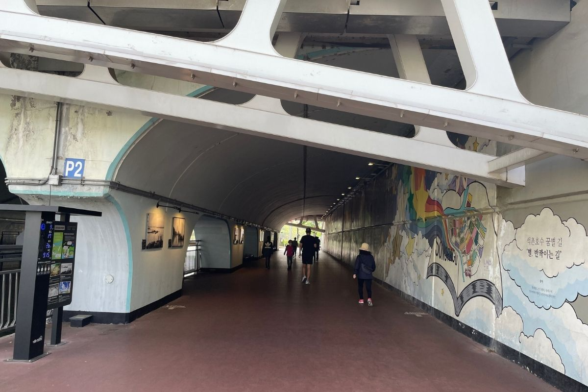 Otro punto destacado del Parque del Lago Seokchon es el Puente del Lago Jamsil. En ambos lados del puente hay un túnel debajo que tiene varias imágenes y pinturas en la pared. Puedes tomarte una foto con los murales de la pared y disfrutar del hermoso arte mientras das un paseo.