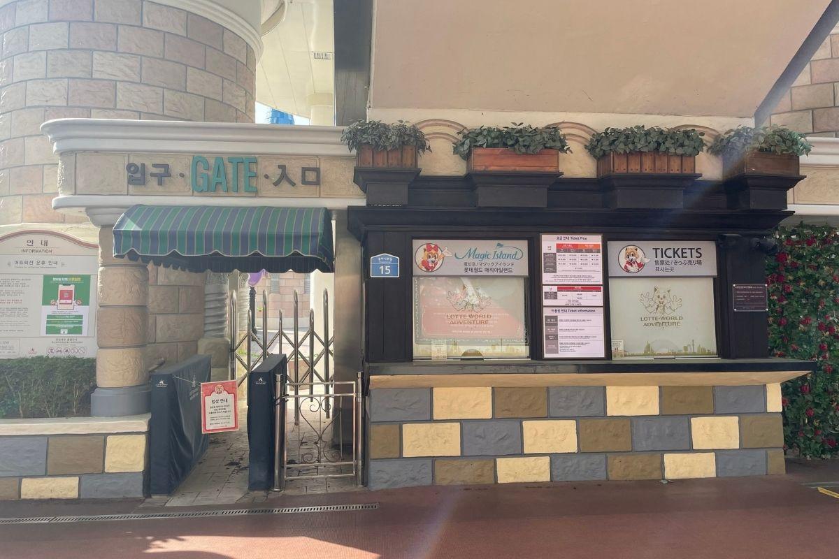 Si continúas caminando, podrás encontrar la taquilla y la entrada de Lotte World, pero no puedes entrar al parque de atracciones por este camino.