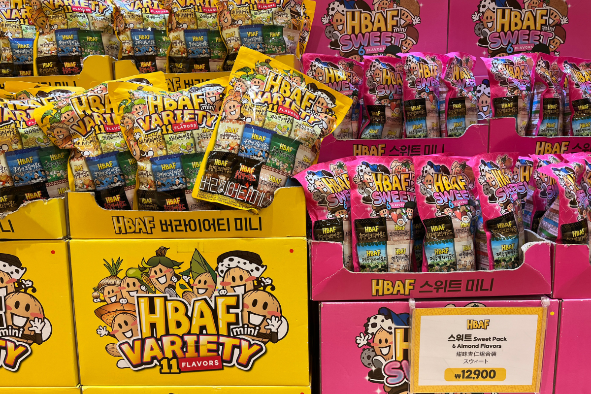 ¡Puede que hayas visto esta marca antes ya que es tan famosa! Hay múltiples ubicaciones de HBAF en Myeongdong, pero la primera sucursal es la más grande. ¡Puedes encontrar una multitud de aperitivos en una variedad de sabores en estas tiendas!