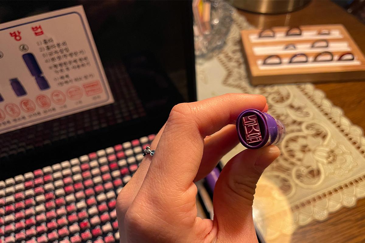 Luego, puedes seleccionar tu nombre de los sellos para usar en el formulario de pago. ¡Si no tienes un nombre coreano, puedes pedirle ayuda al personal para que te elijan uno!