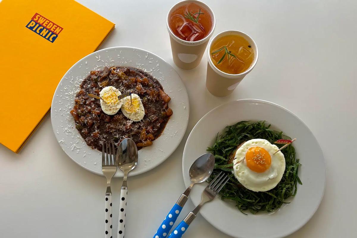 En Sweden Picnic, puedes disfrutar de platos coreanos que combinan bien con el vino. Lo único es que puedes tener tu vino servido en diferentes copas de vino. Los encantadores accesorios y el espacio colorido lo convierten en un lugar popular en Instagram.