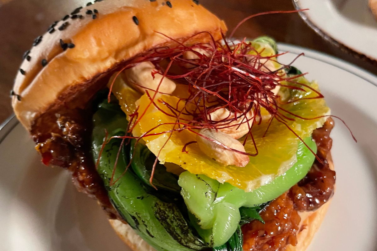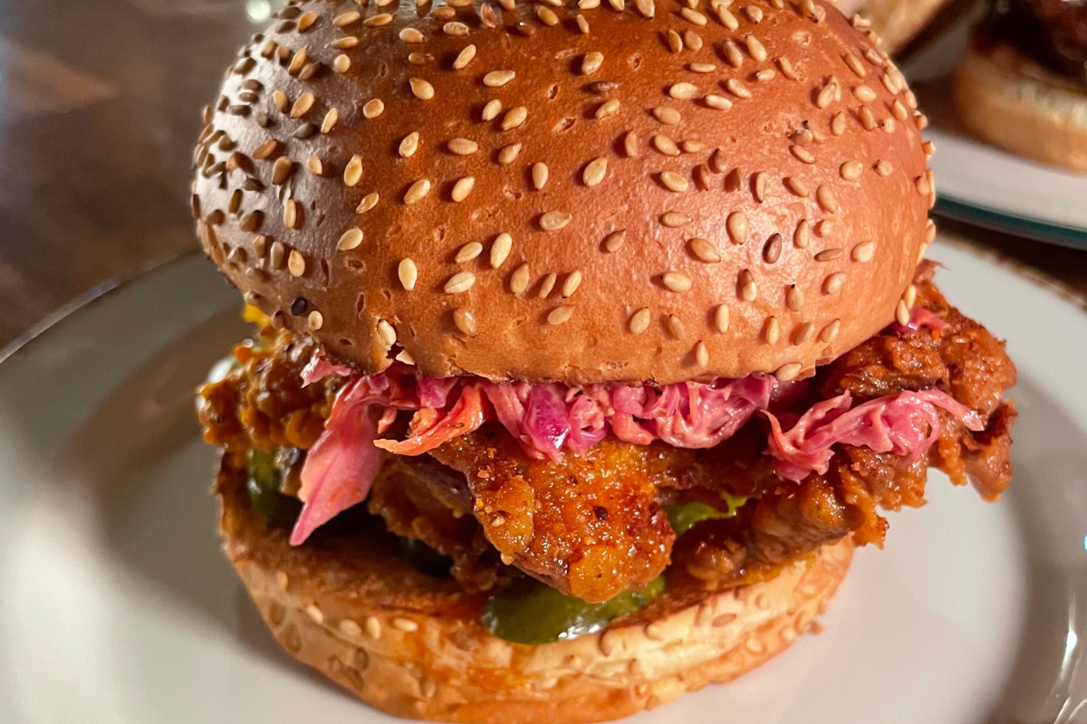 El rebozado exterior es crujiente y la hamburguesa de pollo en su interior es tierna, lo que la convierte en una combinación perfecta. La hamburguesa tiene un sabor ligeramente picante.