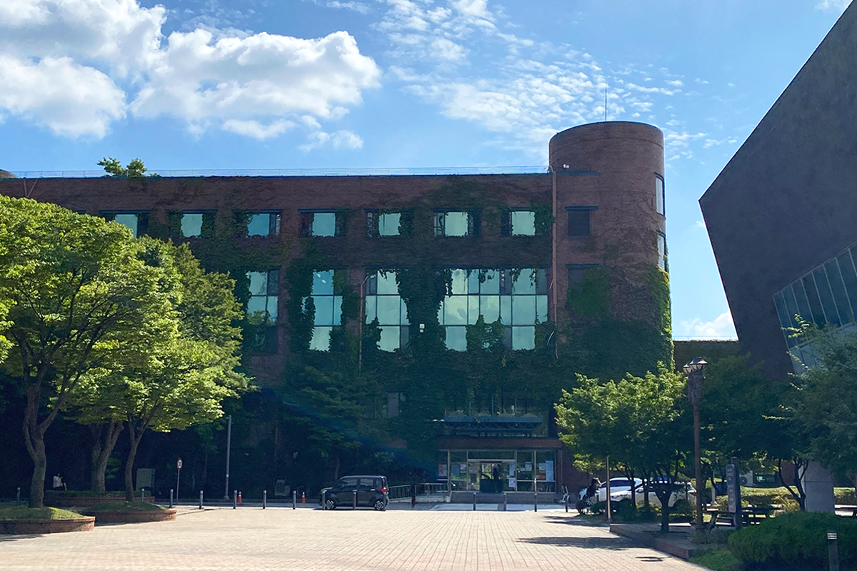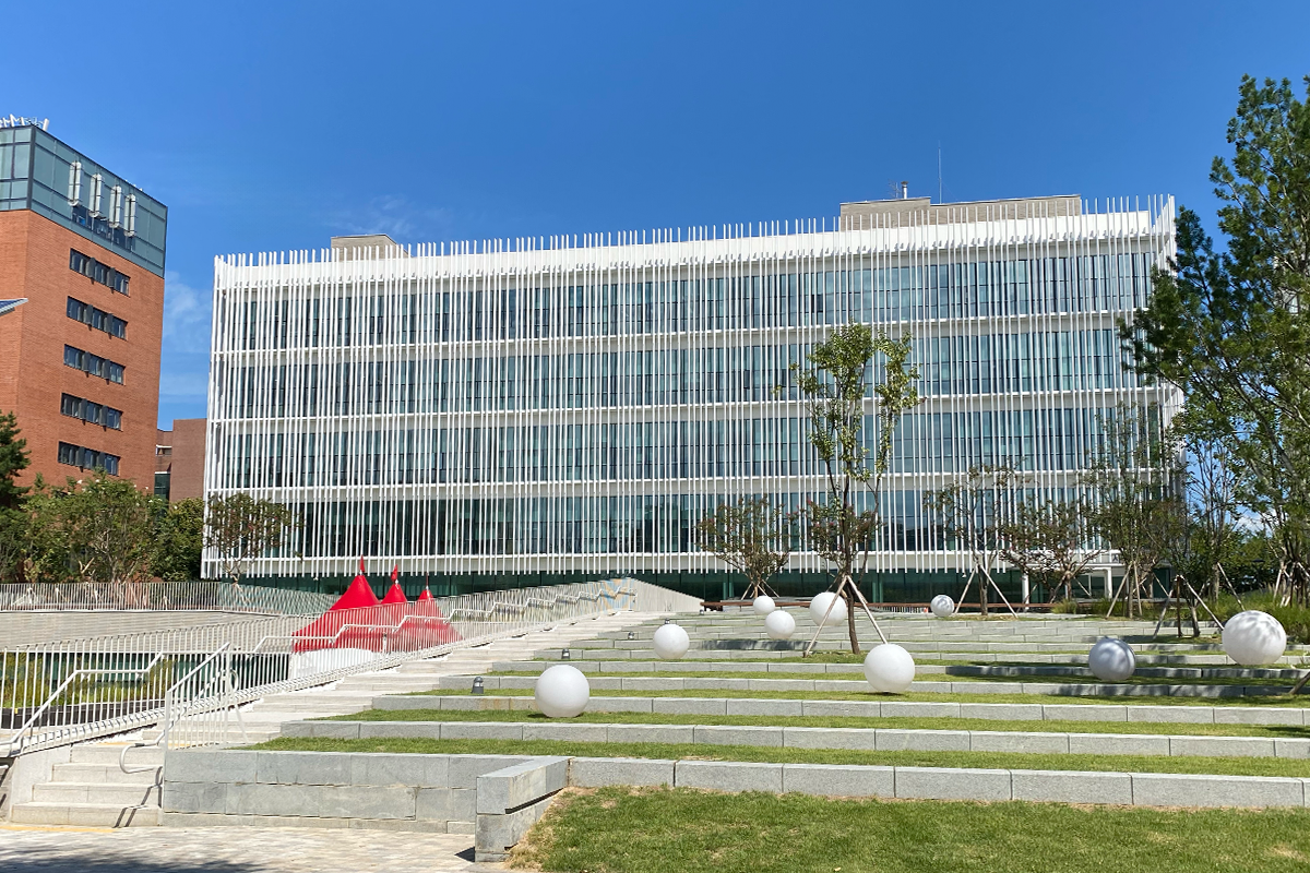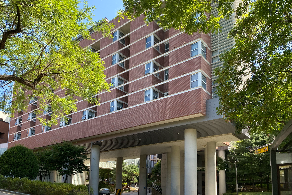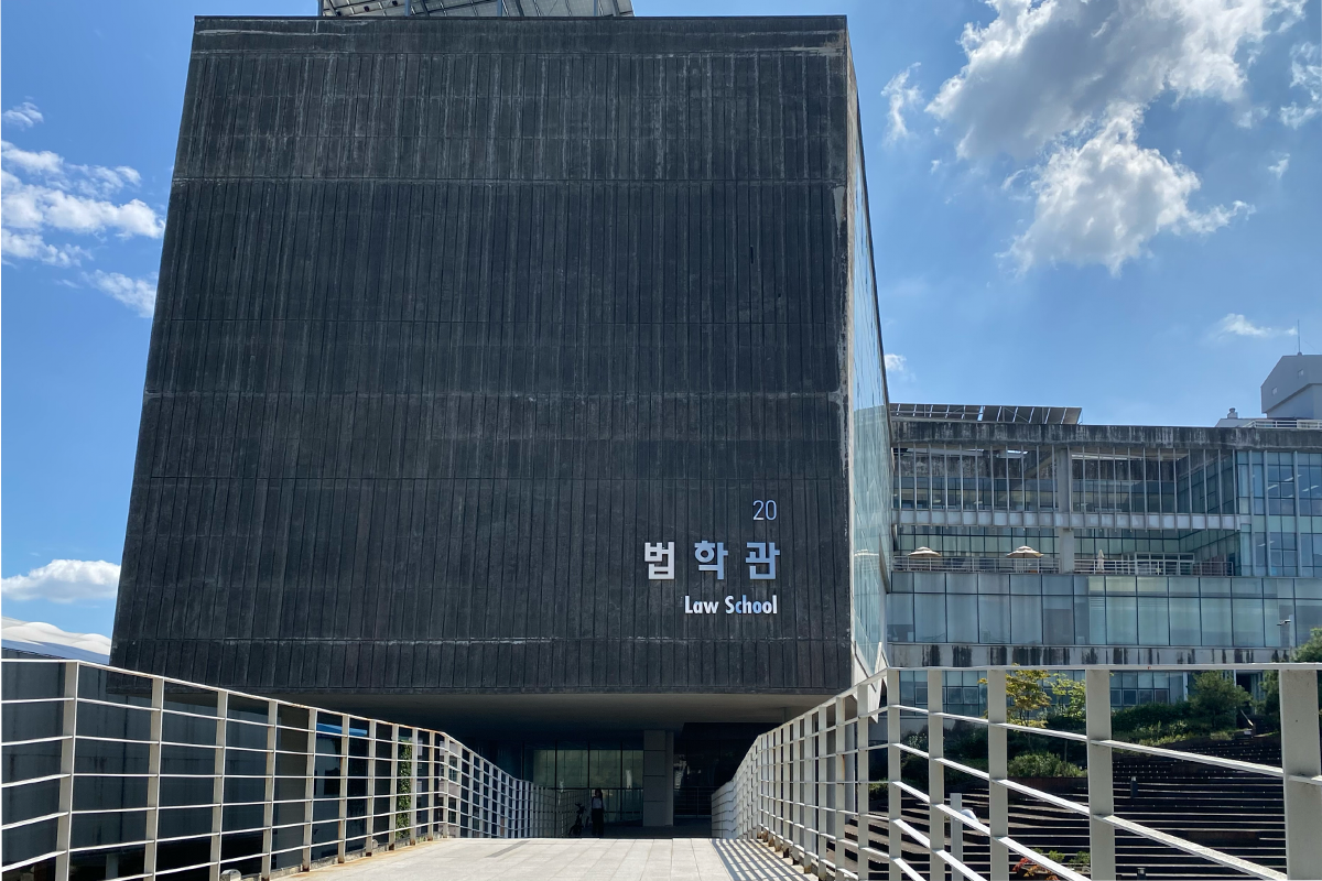 Después del salón de música y el lugar de espectáculos al aire libre, caminando junto al lago, encontrarás el Liberal Arts Building(인문회관).