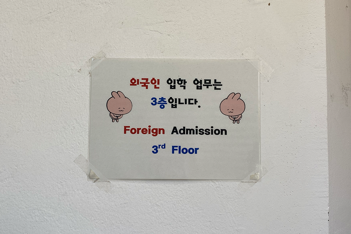 Si hay estudiantes extranjeros que necesitan completar los procedimientos de admisión, por favor sigan las señales hasta el tercer piso.
