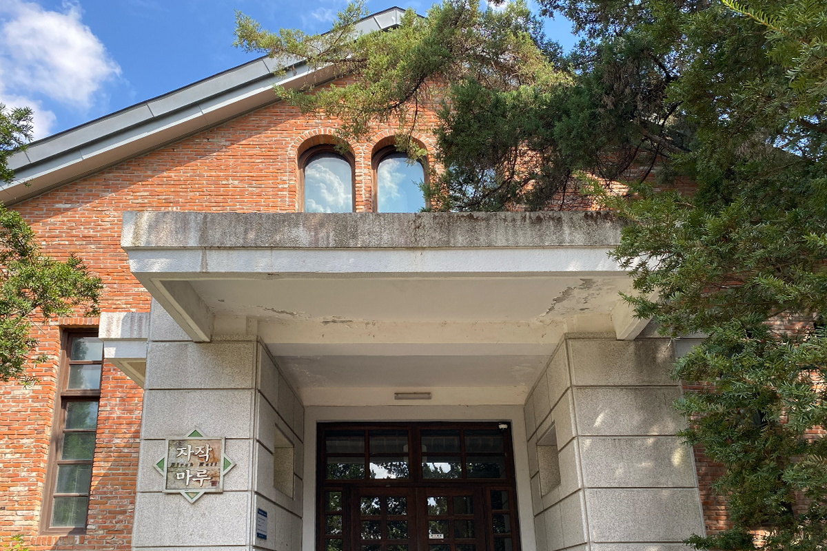 Después de caminar a la derecha del Edificio de Ciencias Naturales, encontrarás un edificio llamado 'Brich Hall(자작마루)'.