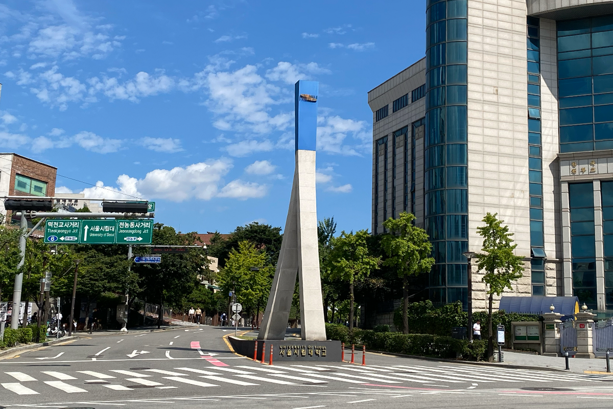 La 'ㅅ' de la Torre de la Universidad de Seúl simboliza la imagen de 'personas' avanzando, y también lleva detrás el significado de una 'universidad abierta'.
