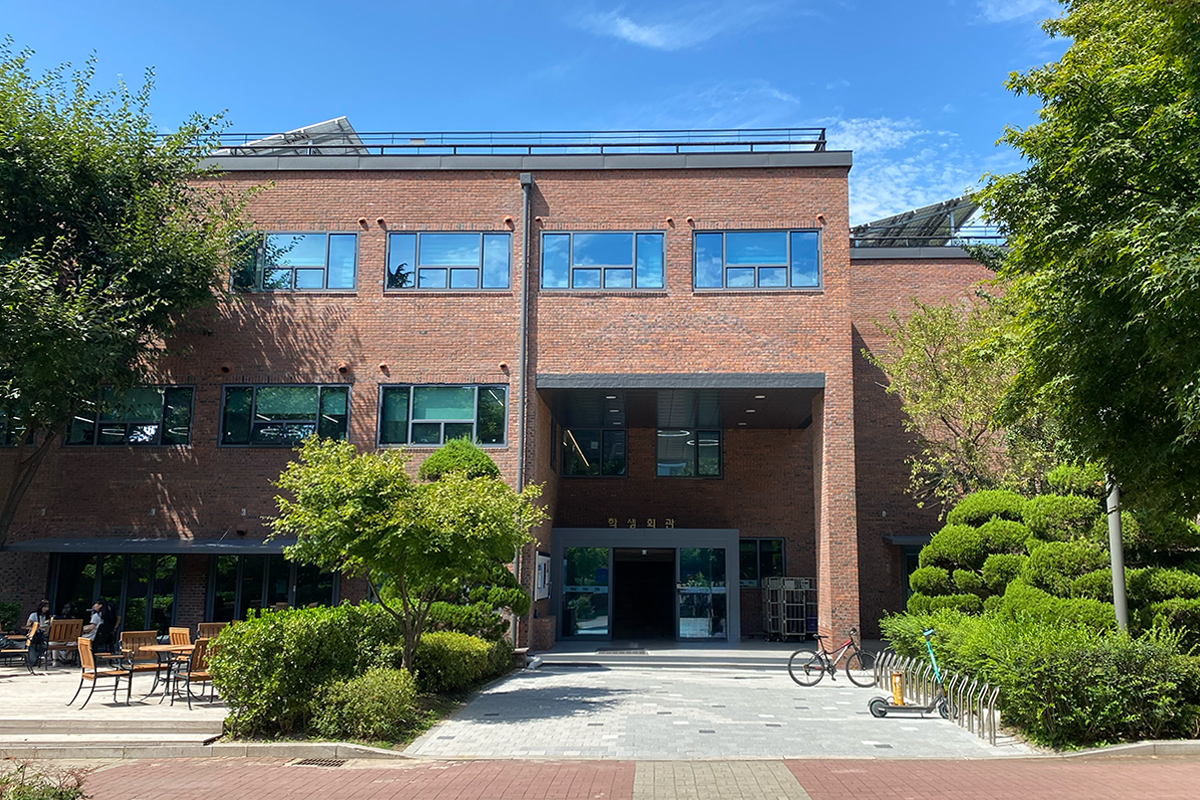 Después de pasar Main auditorium, puedes ver el Edificio de Ciencias Naturales(자연과학관) más adelante. También hay una cafetería estudiantil en el primer piso aquí.