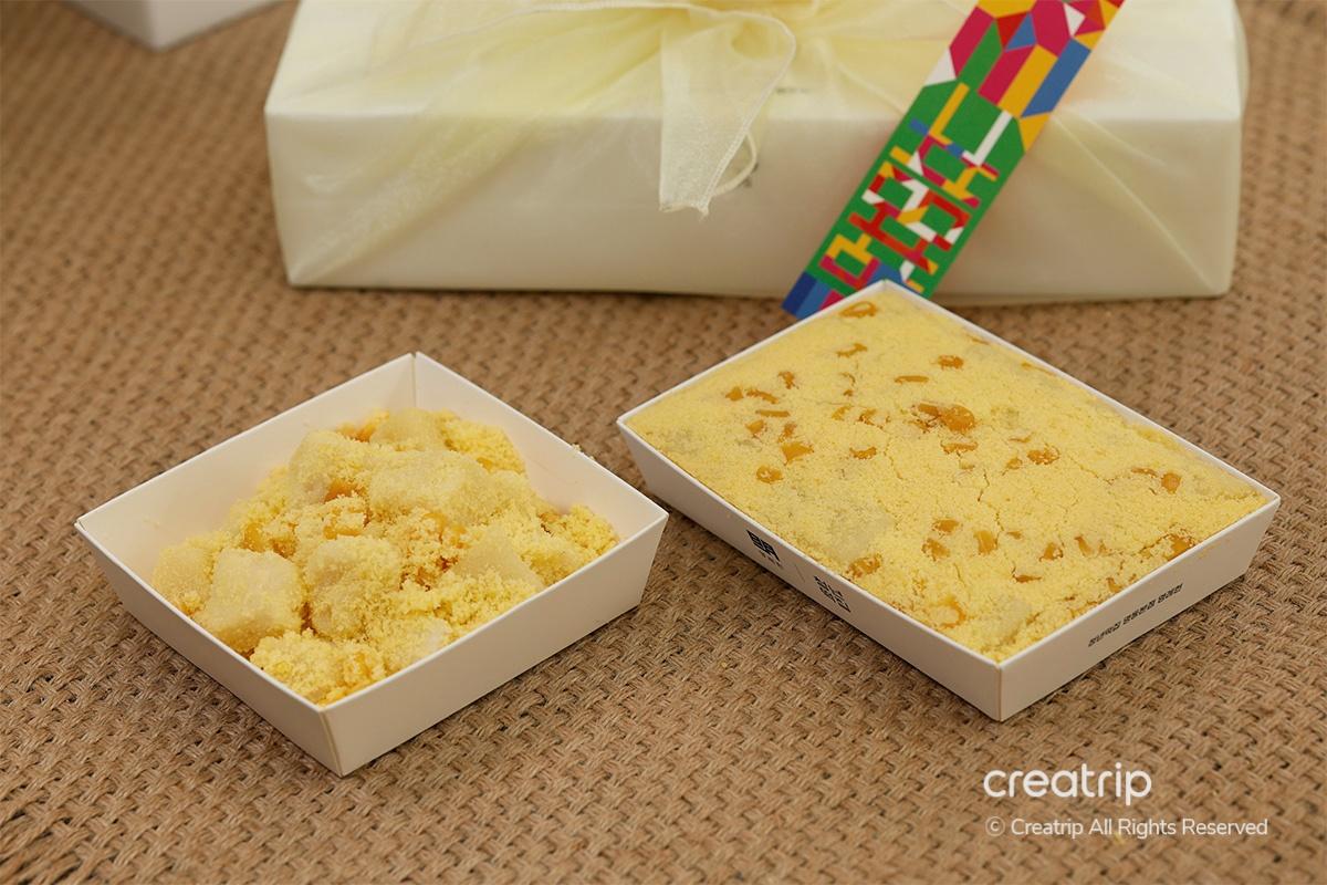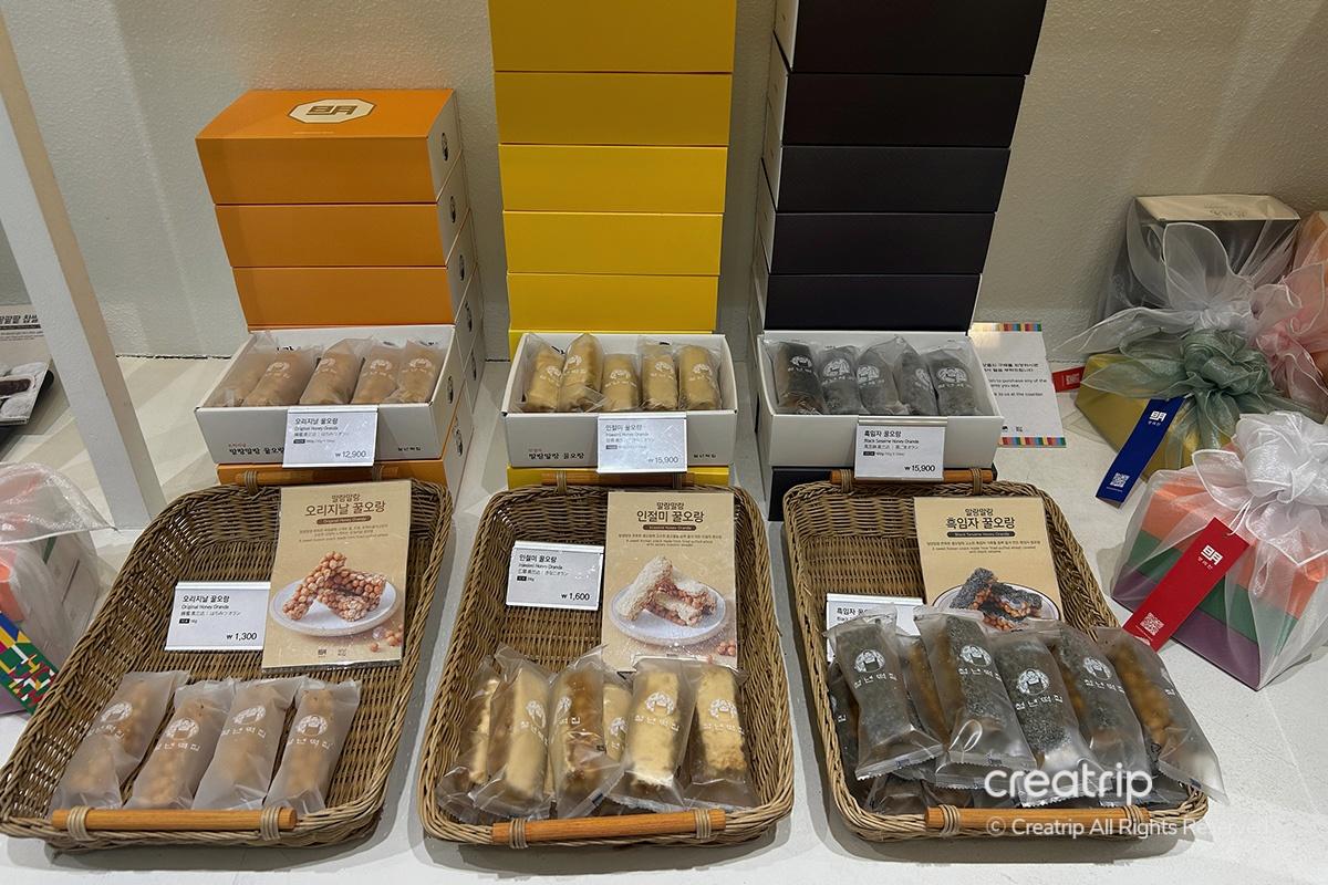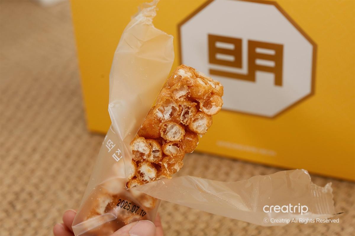 A continuación está Honey Orang, un bocadillo artesanal con una textura crujiente pero suave y un rico sabor a miel. Está disponible individualmente o como set de regalo. Los paquetes sin abrir deben almacenarse en un lugar fresco, lejos de la luz directa del sol, y una vez abiertos, es mejor disfrutarlos pronto. Además, si visitas con un cupón de Creatrip, ¡puedes obtener un Honey Orang gratis!