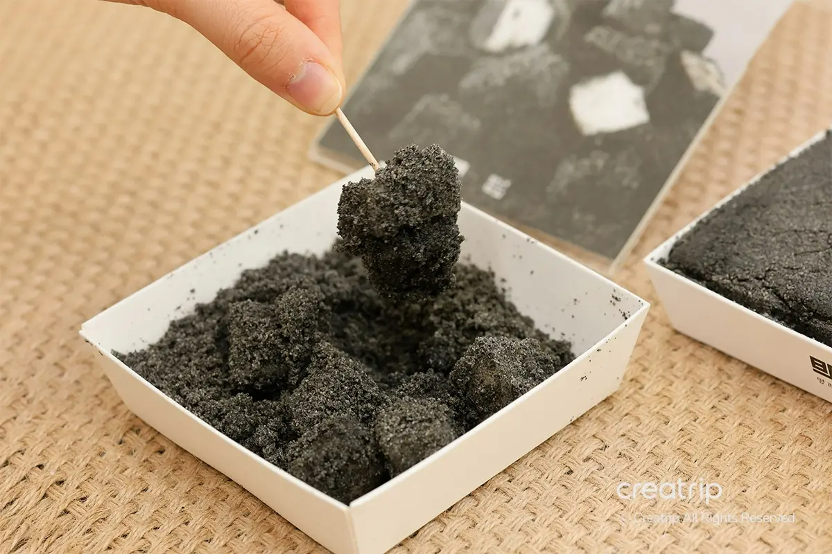 El Injeolmi de sésamo negro se destacó más como su artículo de firma. El polvo de sésamo negro ligeramente dulce y con sabor a nuez combina perfectamente con el pastel de arroz masticable, convirtiéndolo en el favorito del público. Molido varias veces para obtener un sabor rico y profundo, el recubrimiento de sésamo negro se aplica generosamente, ¡agregando a su deliciosidad!