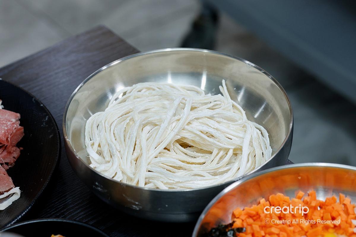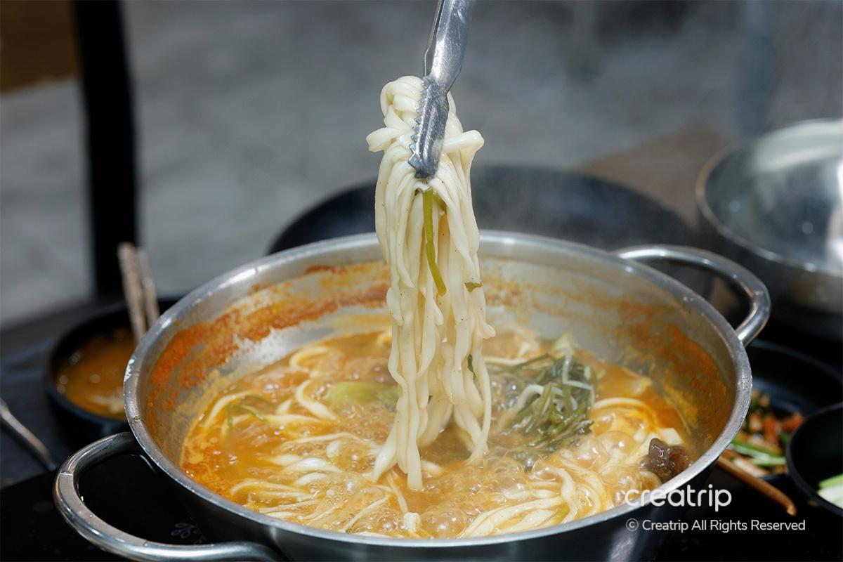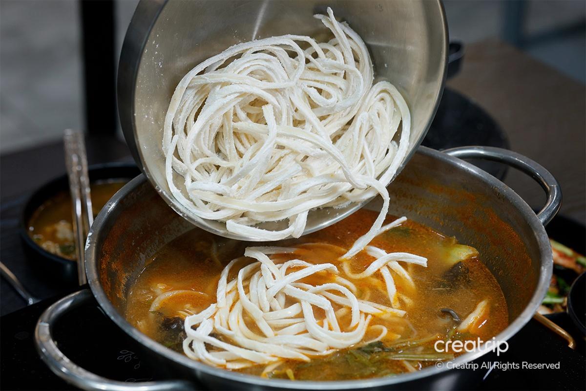 Después de comer todas las verduras y la carne, añade los fideos kalguksu,