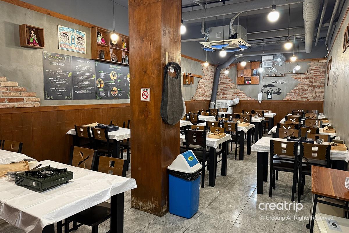 El restaurante está ubicado en el nivel del sótano (B1) del edificio y, como ocupa todo el sótano, ofrece un ambiente espacioso y cómodo donde puedes disfrutar de tu comida con tranquilidad.