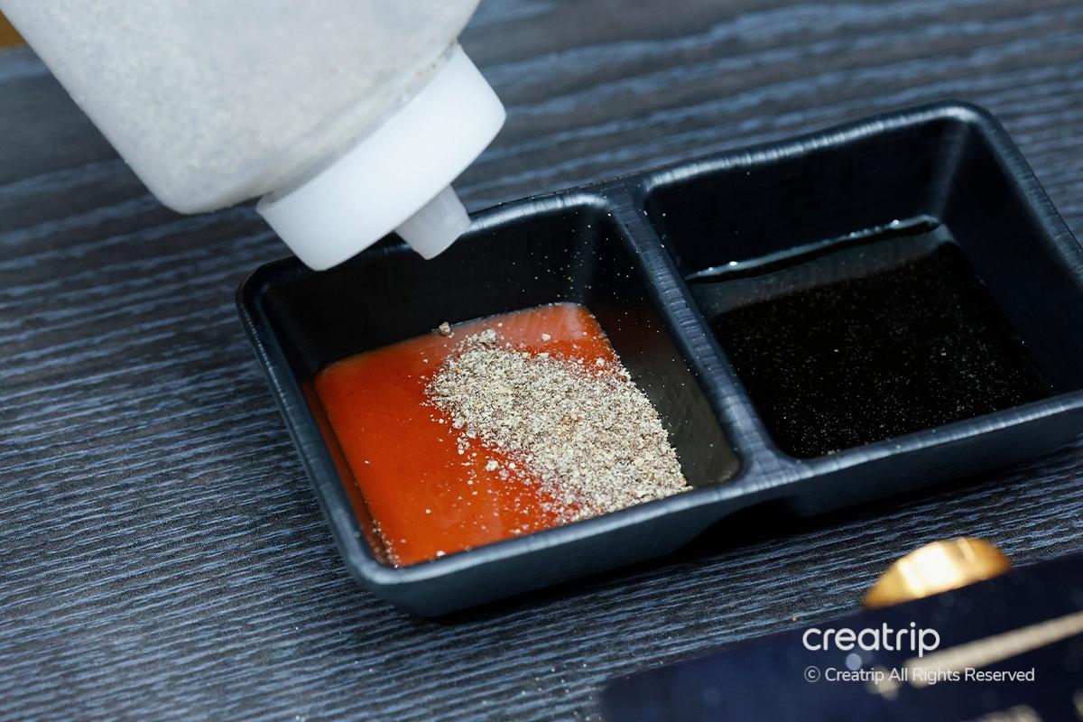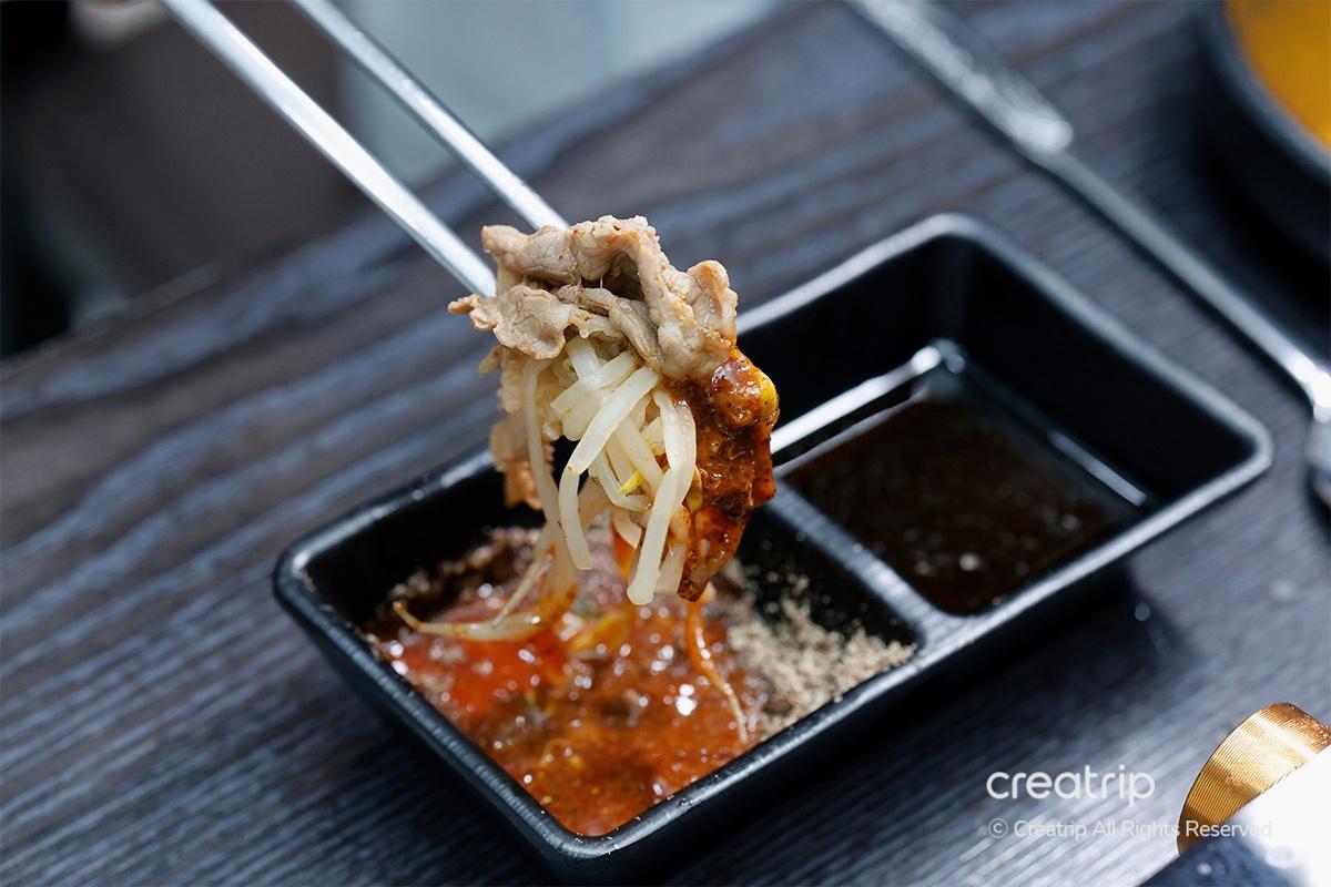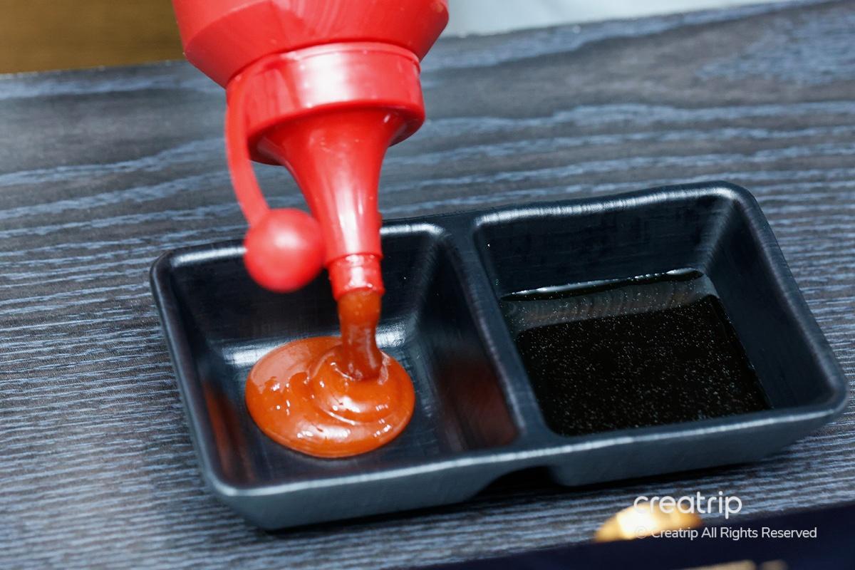 Cuando intenté sumergirlo en la salsa cho-gochujang que preparé antes, pude sentir un sabor diferente y disfrutarlo de una manera nueva.