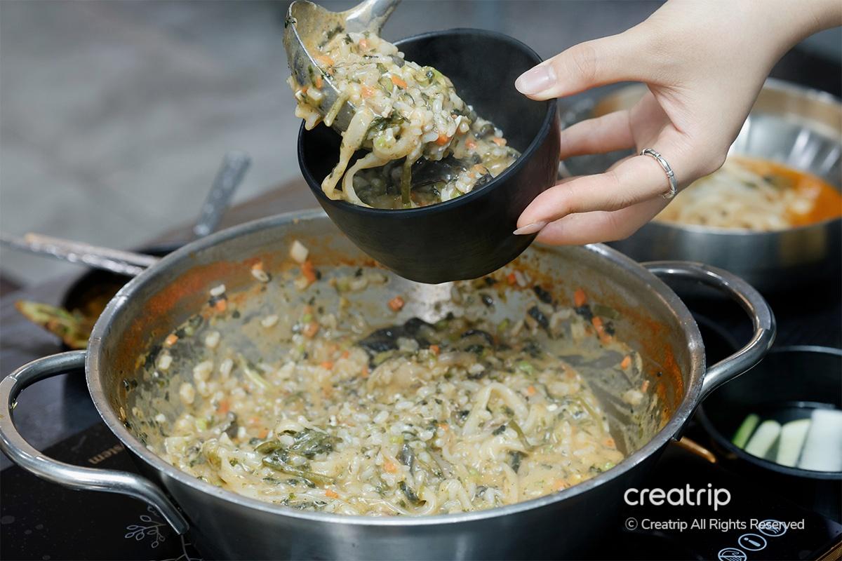 * Por un adicional de 2,000 KRW en el lugar, puedes cambiar a ingredientes dietéticos. Kalguksu de Minari (fideos de trigo -> fideos de algas marinas), Gachas de Minari (arroz -> gachas de konjac con arroz integral)