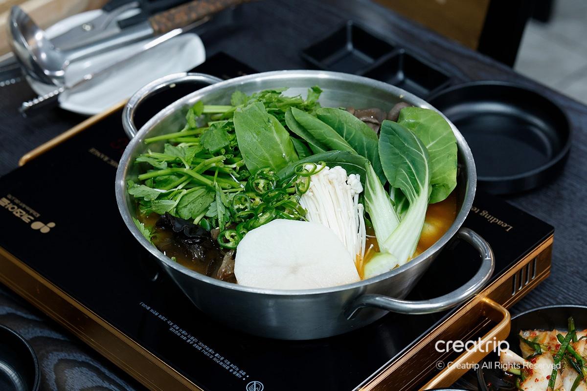 'Gyeongbokgung Sikdang' ofrece platos saludables de shabu-shabu utilizando perejil de agua y opciones de dieta baja en carbohidratos, lo que lo convierte en un lugar que cualquiera puede disfrutar sin preocupación.