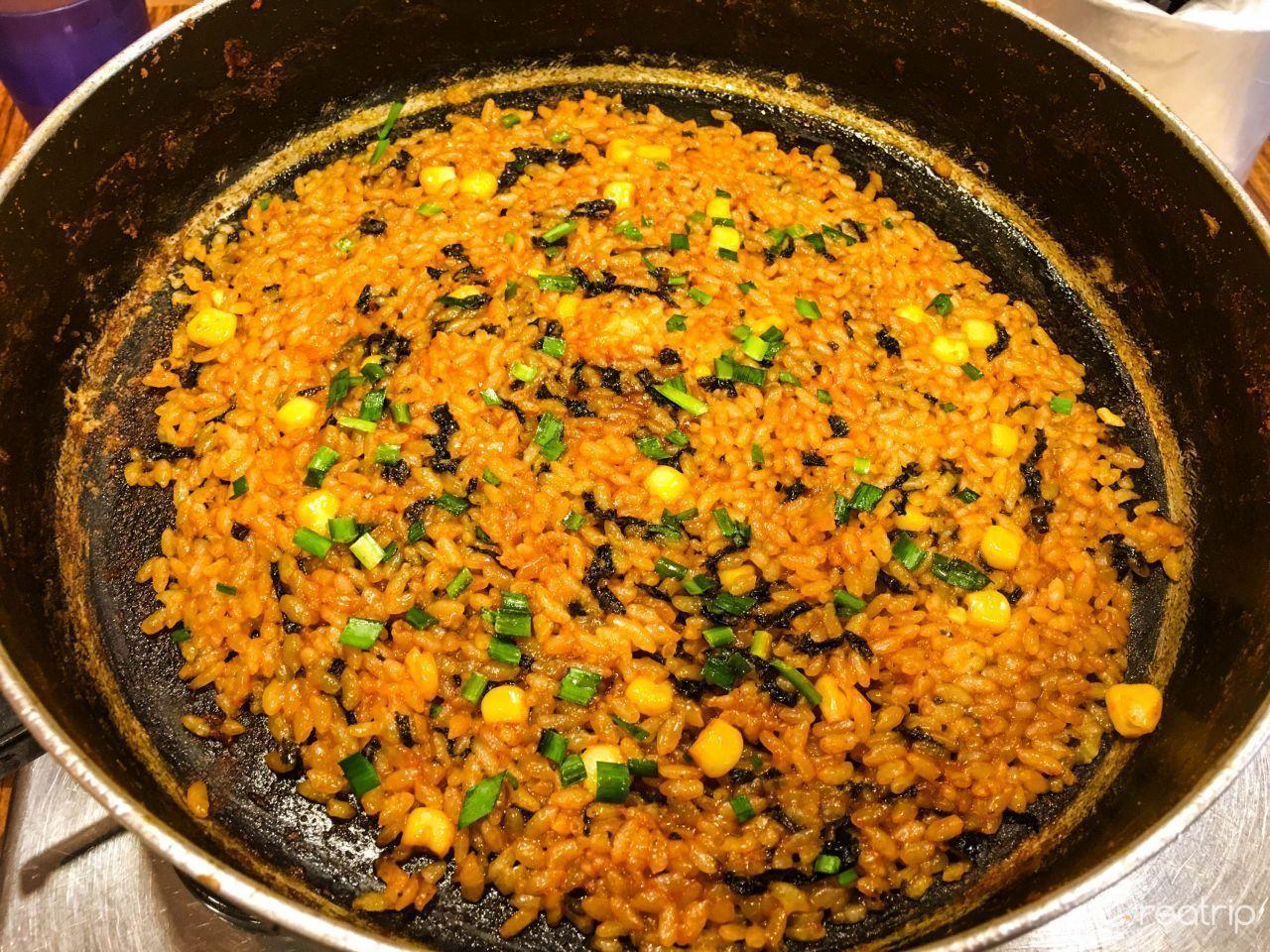 Por supuesto, no puedes olvidar freír el arroz en las salsas sobrantes después de terminar con el tteokbokki.