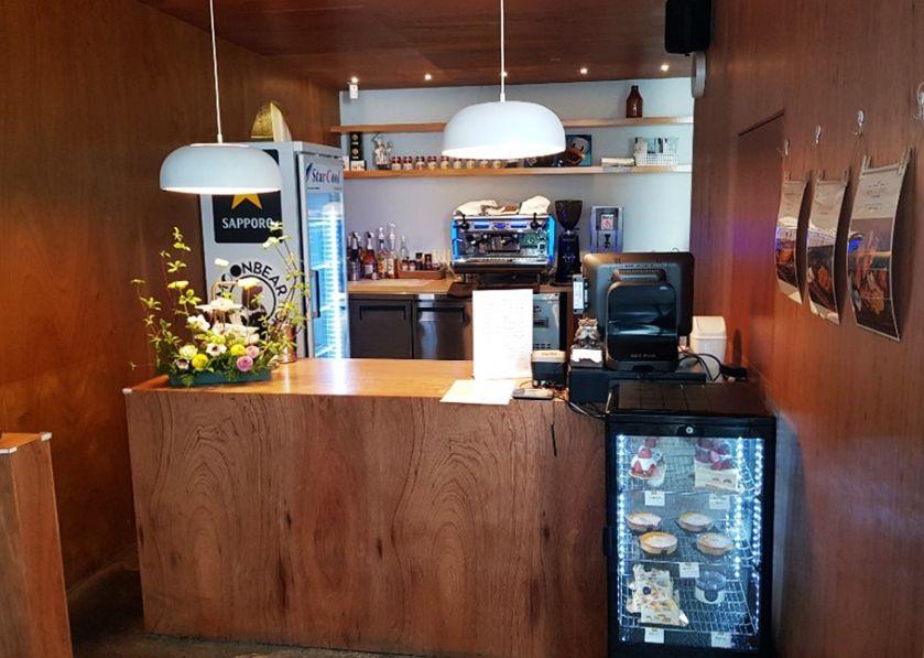 Caminando por el paseo de árboles, encontrarás la puerta del café.