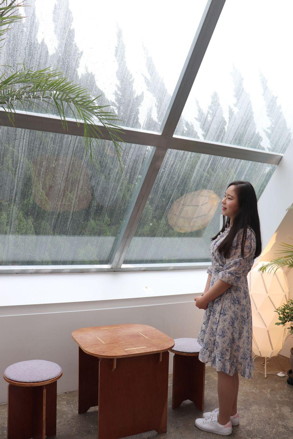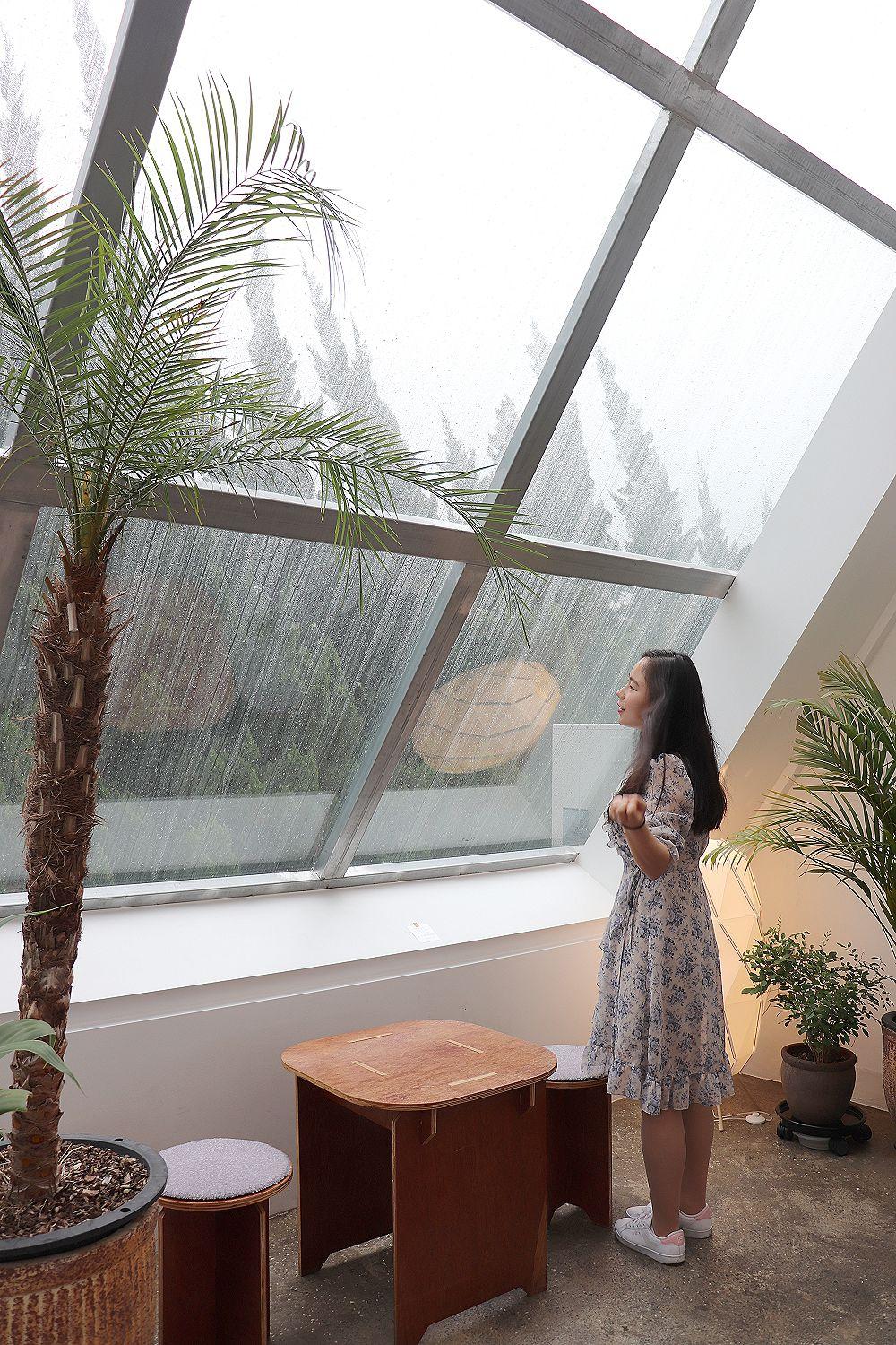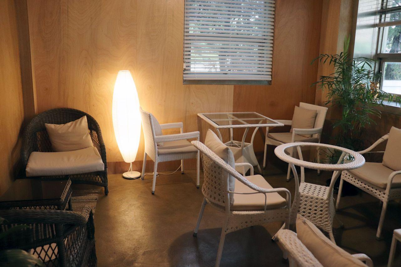 Ahora echemos un vistazo al tercer piso, el espacio más popular en el café. El tercer piso es un área hermosa con muchas ventanas de vidrio, plantas, muebles de madera y paredes blancas. Hay una sensación muy tranquila y relajante, como si estuvieras en medio de un jardín.