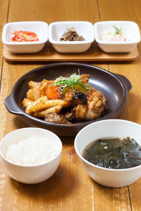 Venden comidas típicas coreanas como bibimbap, samgyetang, bulgogi y pollo al vapor,