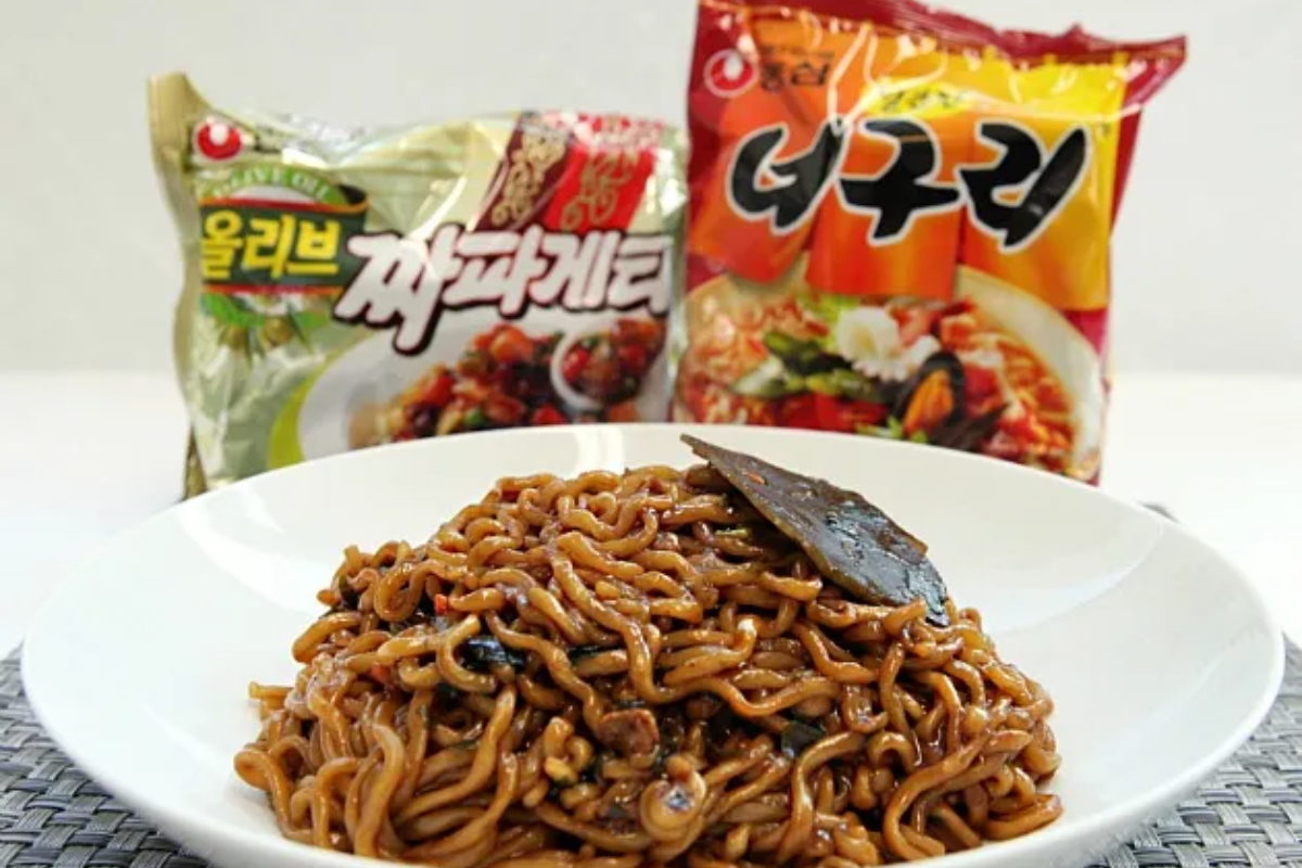 Otro ramen instantáneo clásico es Chapagetti, que es una versión instantánea del plato de fusión coreano-chino Jajangmyeon, también conocido como fideos de frijol negro.