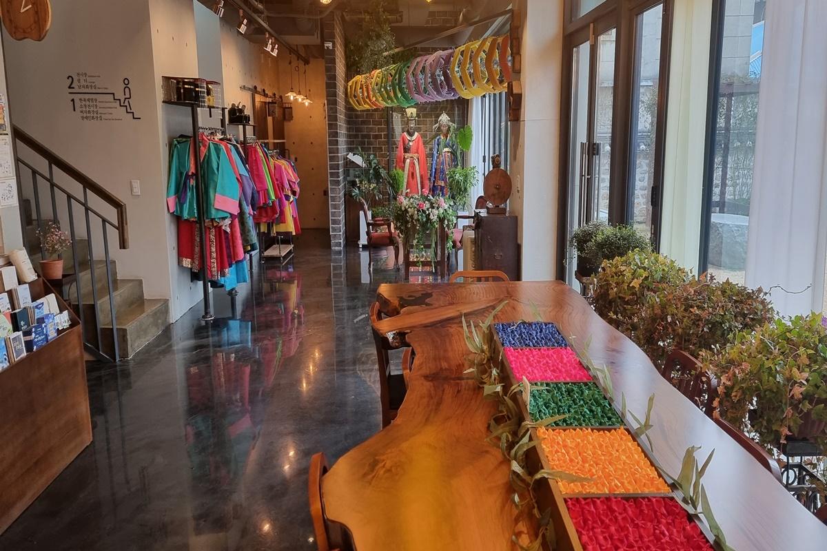 La isla de Ganghwa solía ser uno de los mayores fabricantes de sochang, una tela tradicional coreana. Este centro de experiencia llamado Sochang Experience Center fue una vez una fábrica de teñido de tela sochang, pero ahora es un centro donde puedes aprender todo sobre sochang y hacer tus propios pañuelos y otras actividades.