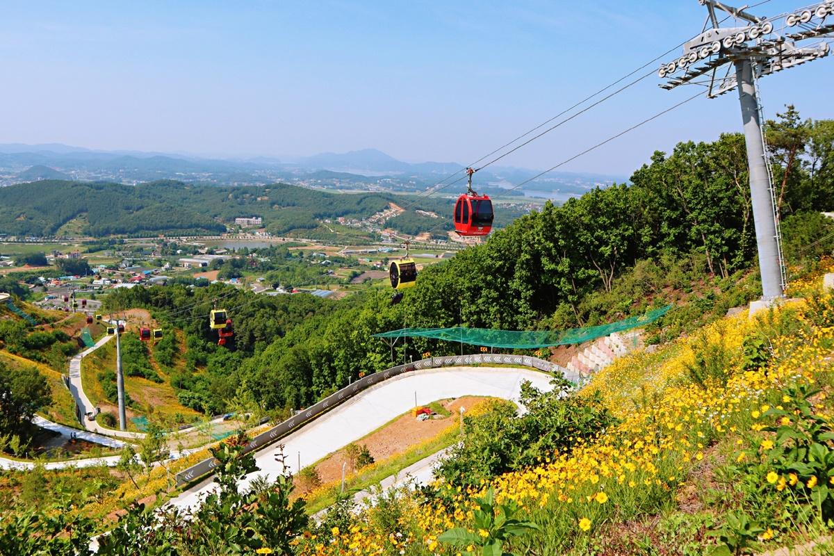 El Ganghwa Luge es un curso de 1,8 km con un total de dos recorridos en funcionamiento donde puedes usar la gravedad para deslizarte por las pendientes.