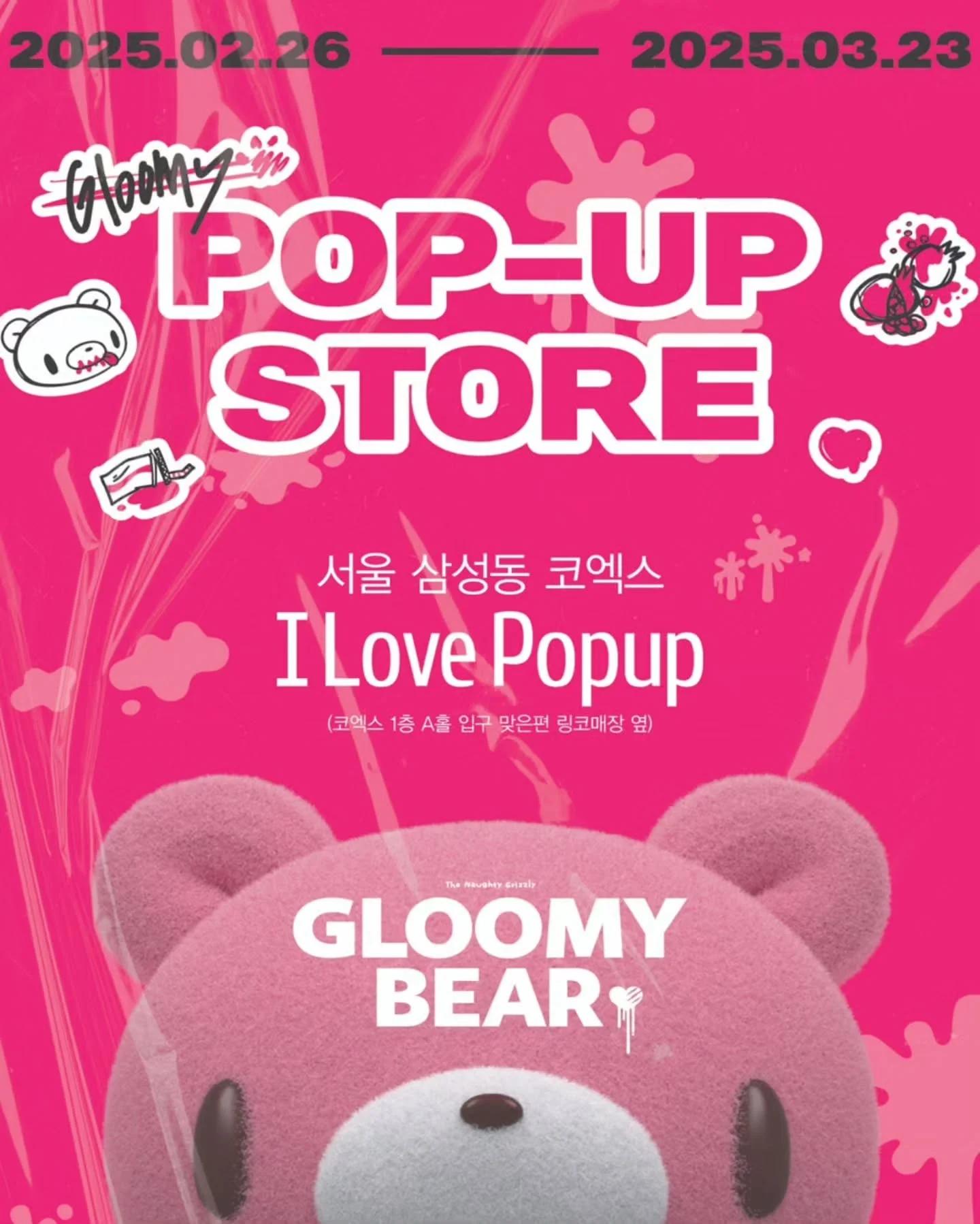 Gloomy是一個具有獨特世界觀的角色,在可愛的外表下隱藏著野熊的本能,會攻擊牠的主人Peter。本快閃活動將會有各種毛絨玩具、文具、趣味商品和配飾,以特別價格銷售。此外,還計劃了一些有趣的活動,所以如果你要去COEX,記得順道來參觀!