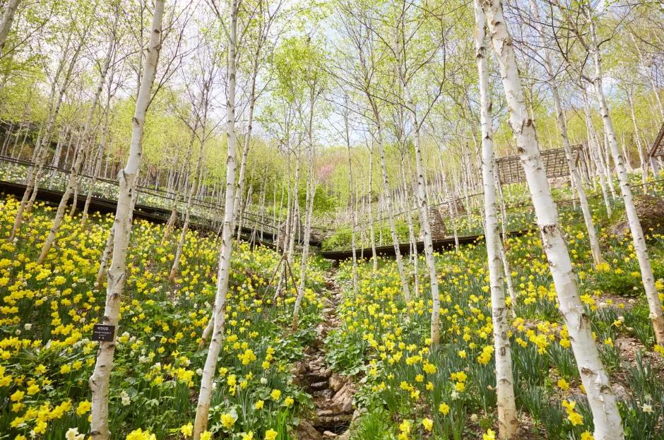 在位於Gyeonggi-do的樹木園'畫談森林',你可以欣賞到黃花的波浪,有全部37種和大約100,000株的水仙花在例如樺樹林和梅園等主題花園中盛開。