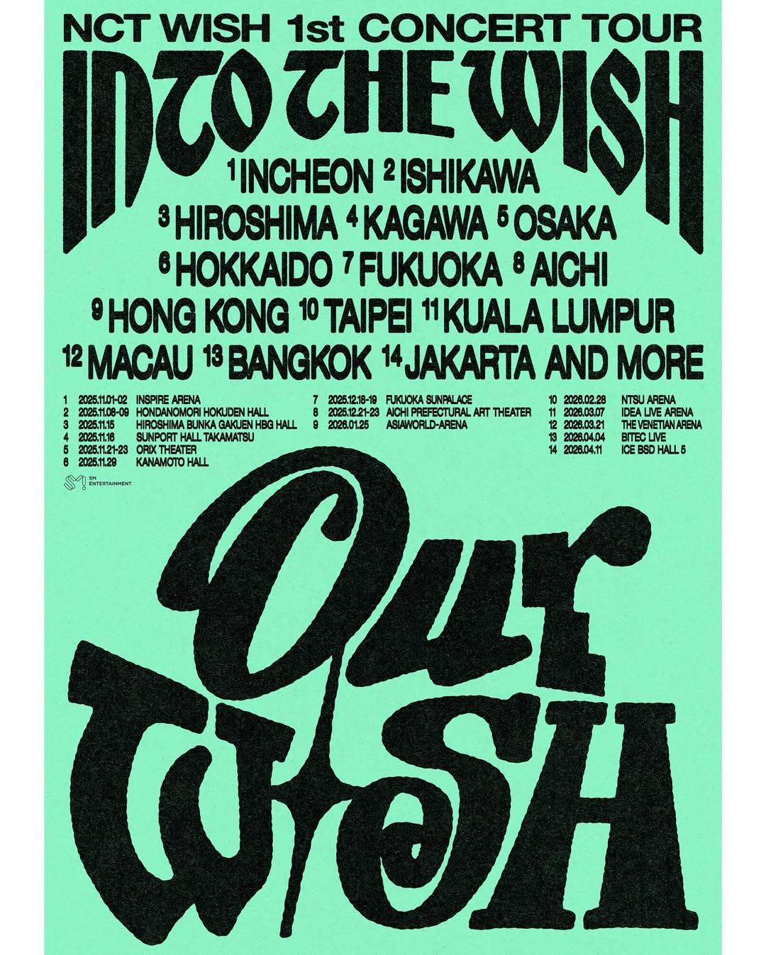 新年伊始,亞洲的中心地香港和臺北的演出已在籌備中,3月則可在吉隆坡和澳門享受NCT WISH的音樂。4月將在曼谷和雅加達為巡演畫上句號。