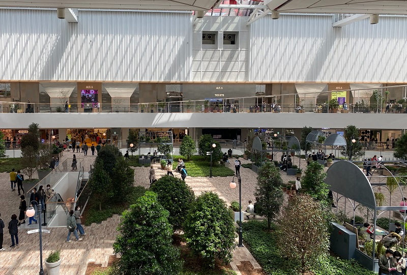 Si vous entrez par l'Entrée 4, vous verrez le 'Jardin de la Cascade', qui est l'une des principales attractions du centre commercial. Cette belle architecture intérieure est une cascade qui possède un jardin et vous pouvez entendre le bruit de l'eau qui coule et sentir les plantes fraîches. Cela vous donne presque l'impression d'être dans un jardin botanique plutôt que dans un centre commercial !