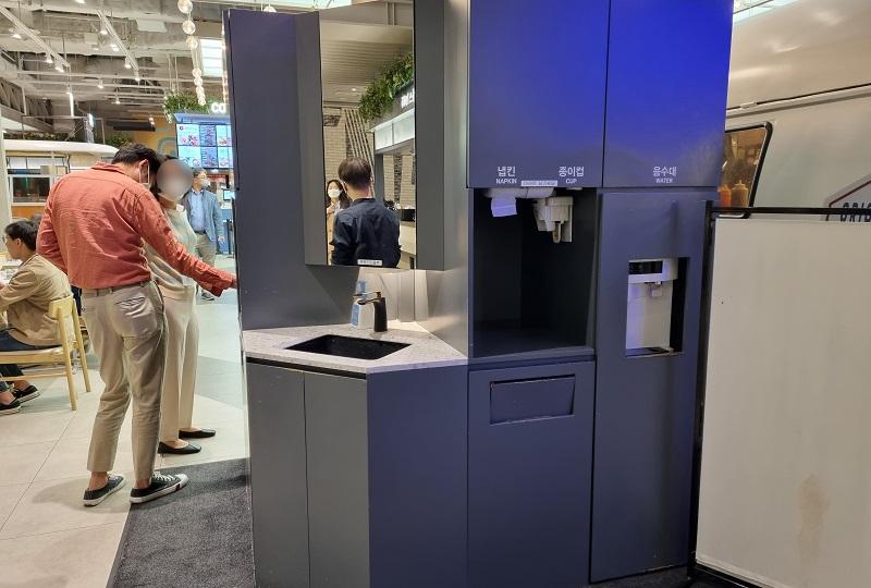 À The Hyundai Seoul, vous pouvez trouver des machines comme celle illustrée ci-dessus. Celles-ci sont installées à l'entrée de chaque magasin. C'est ainsi que vous pouvez faire la queue pour les magasins populaires. Pour garantir que votre expérience de shopping soit agréable, de nombreux magasins ne laisseront entrer qu'un certain nombre de personnes. Par conséquent, certains magasins populaires auront des files d'attente et vous devrez entrer votre numéro de téléphone et le nombre de personnes dans votre groupe et attendre jusqu'à ce que vous soyez autorisé à entrer dans le magasin. Gardez à l'esprit que seuls les numéros de téléphone coréens fonctionneront pour ce système. Si vous n'avez pas de numéro de téléphone coréen, vous pouvez également télécharger l'application Hyundai Food Museum à partir du code QR qui se trouve sur la machine et attendre via l'application.