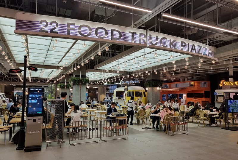 Le food court qui se trouve au niveau B1 est un endroit où vous pouvez manger relativement bon marché. Contrairement à un food court typique, il y a aussi des camions de nourriture ici !