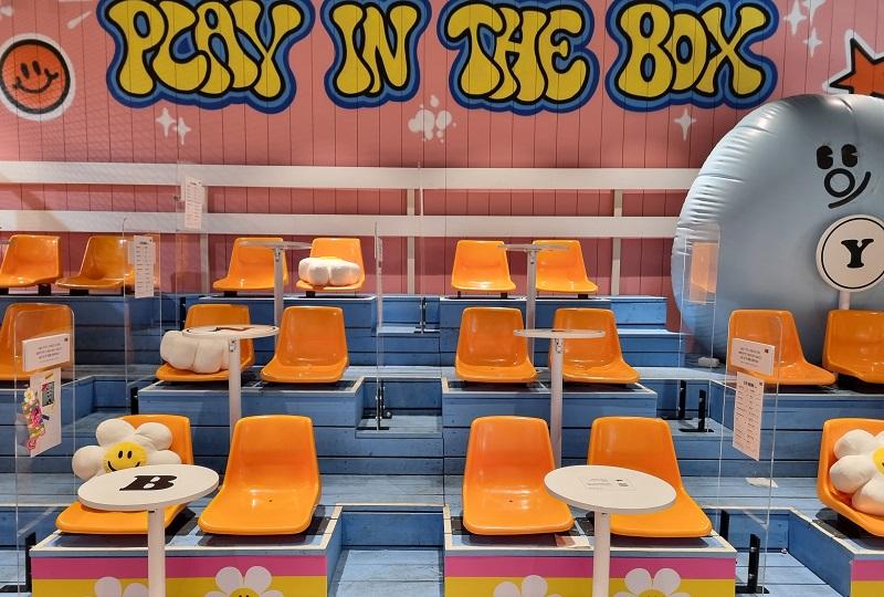 The Hyundai Seoul a de nombreux magasins éphémères parmi les étages. Lorsque nous avons visité, il y avait un magasin éphémère 'PLAY IN THE BOX' au 5ème étage. C'est à l'origine un self-studio qui vient de Gangnam. C'est un espace culturel où vous pouvez directement faire l'expérience de prendre des photos et des salles conceptuelles immersives amusantes.