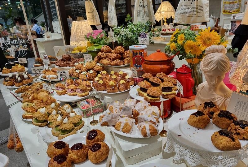 Ils sont surtout connus pour leurs scones et ils vendent une très large sélection de scones. Le prix des scones varie d'environ 4,500 KRW à 5,500 KRW et le prix des gâteaux varie d'environ 7,500 KRW à 8,500 KRW. Les Americanos coûtent environ 5,000 KRW. Le café n'est pas très grand donc il y a un nombre limité de places, mais si vous venez tôt, vous pourrez profiter de tous vos desserts et obtenir une place !