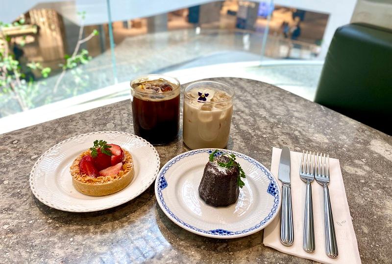 Lorsque nous avons visité en mai 2022, ils vendaient un dessert de saison qui était une tarte aux fraises (9,000 KRW). Le goût riche et le croustillant de la tarte ainsi que la douceur de la crème et l'acidité des fraises se mariaient très bien ensemble. Nous avons également pris un Canelé (3,500 KRW) qui est un dessert avec un extérieur amer et une douceur concentrée à l'intérieur. Pour les boissons, nous avons opté pour le Jarden Blue Ice Milk Tea (9,000 KRW) et un Americano glacé.