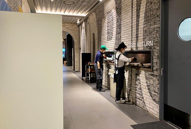 Lorsque vous avez fini de manger, vous devez rapporter votre plateau à la zone de retour.