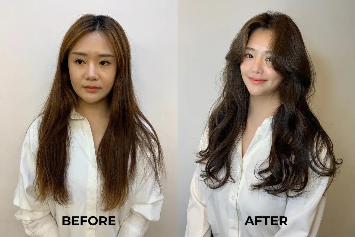 Coupe longue en dégradé + Perm romantique | Coupe longue en dégradé + Perm romantique + Frange légère |