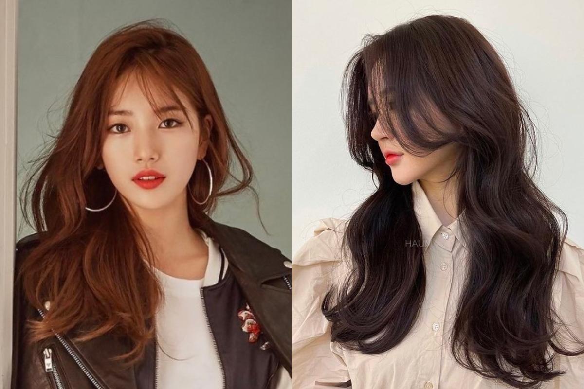 Coupe mi-longue en dégradé + Perm romantique + Frange légère | Coupe longue en dégradé + Perm romantique + Frange sur le côté |