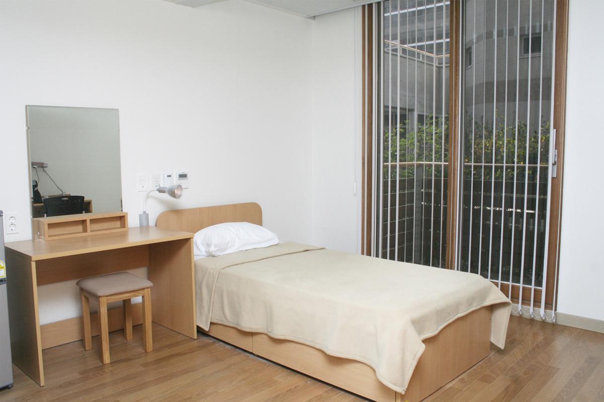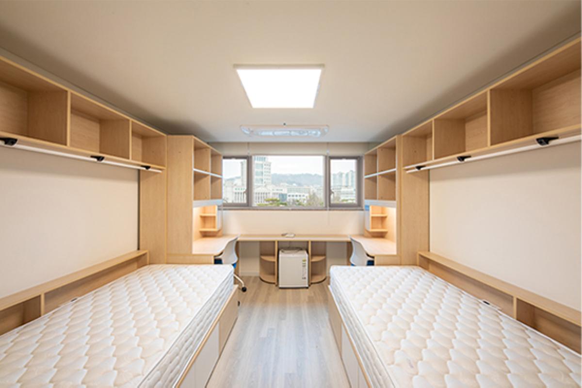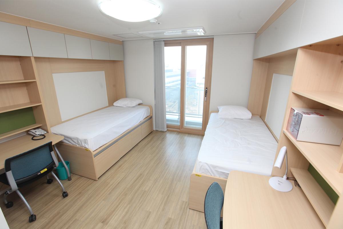 Un dortoir est un espace résidentiel fourni par chaque université. Ils sont principalement situés sur le campus ou à proximité de l'université et ont l'avantage de ne pas avoir à acheter des articles tels que des meubles qui sont difficiles à gérer lors du retour à la maison. De plus, il y a un avantage à pouvoir interagir facilement avec divers étudiants internationaux venus étudier pour le même but, ainsi qu'avec des étudiants coréens au sein de l'université.