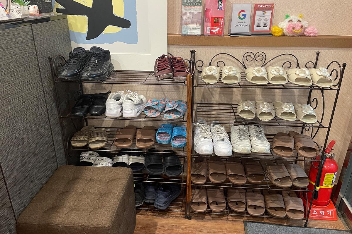 En entrant, j'ai tout de suite changé de chaussures pour des chaussons d'intérieur. Le membre du personnel s'est occupé gentiment de mes chaussures !